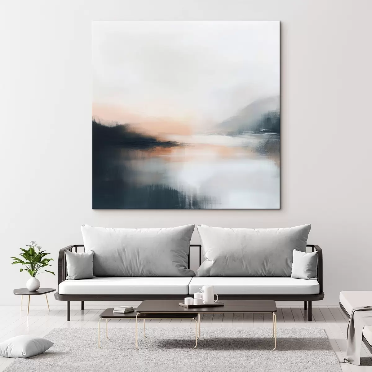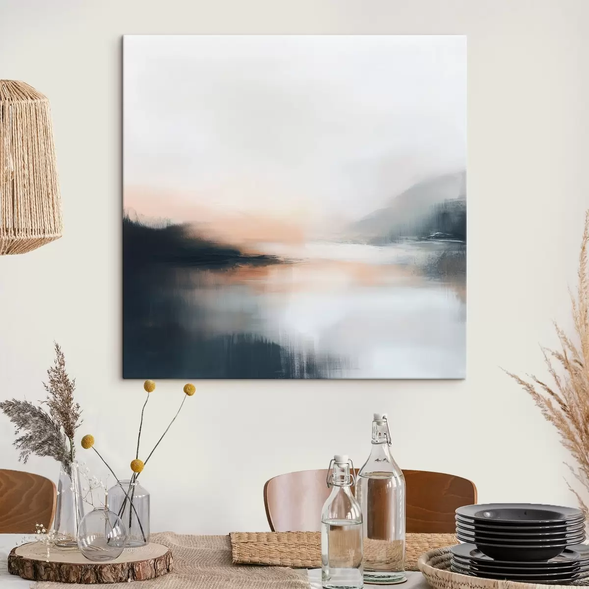 Obraz Abstraktná hmlistá krajina v teplej béžovo-koralovej farebnej škále Nr. s48861