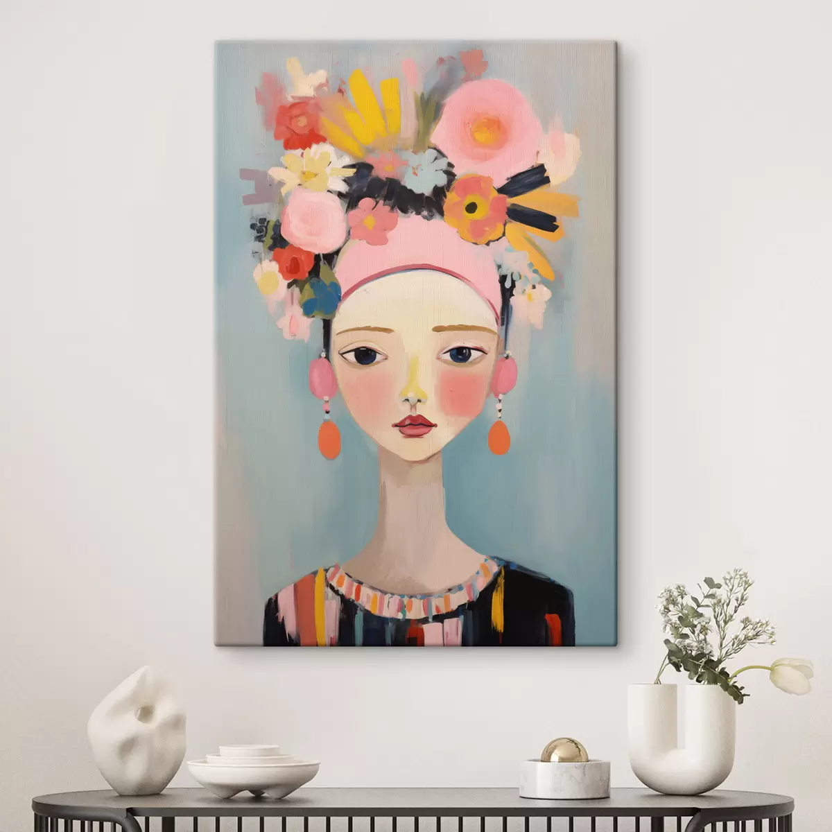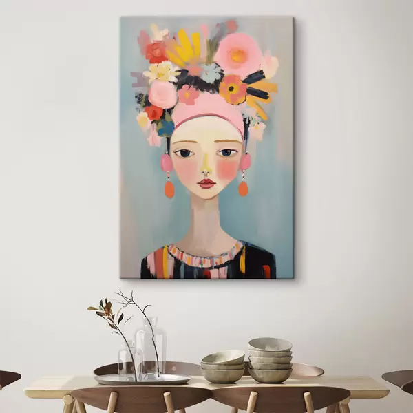 Obraz Portrét ženy s kvetmi vo vlasoch, abstraktný štýl Nr. s48936