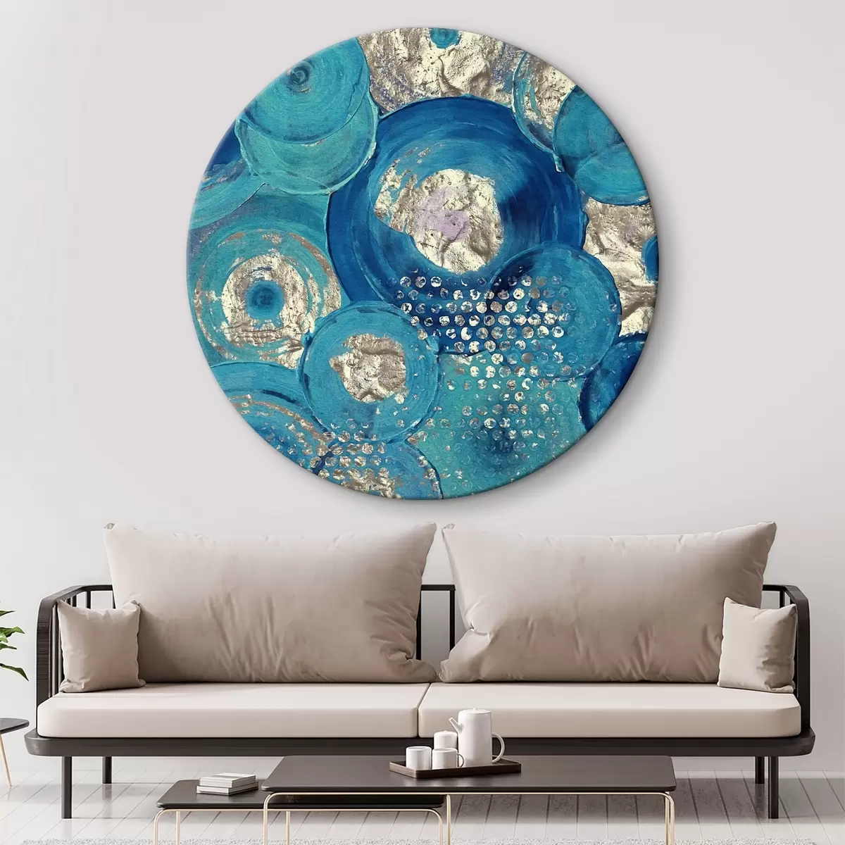 Obrázok Azúrové kruhy so zlatými bodkami, olejové farby Nr r01035