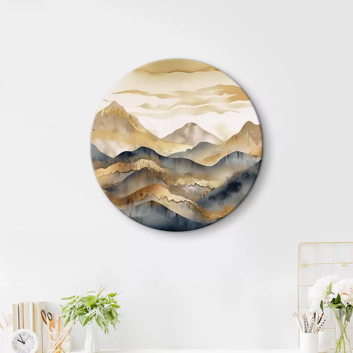 Obrázok Abstraktné pozadie hôr v béžovej a sivej farbe so zlatými prvkami na bielom pozadí Nr r34462