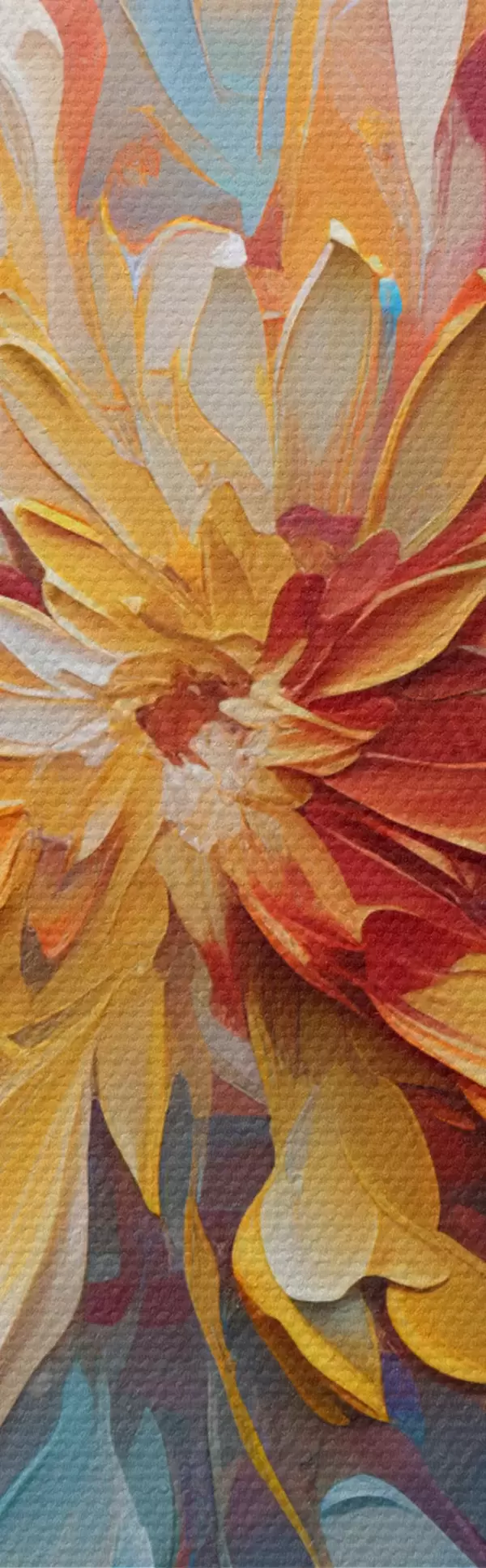 Obraz je možné zavesiť ihneď po jeho prevzatí. Obraz bude napnutý na drevených nosidlách so šírkou 2 cm.
