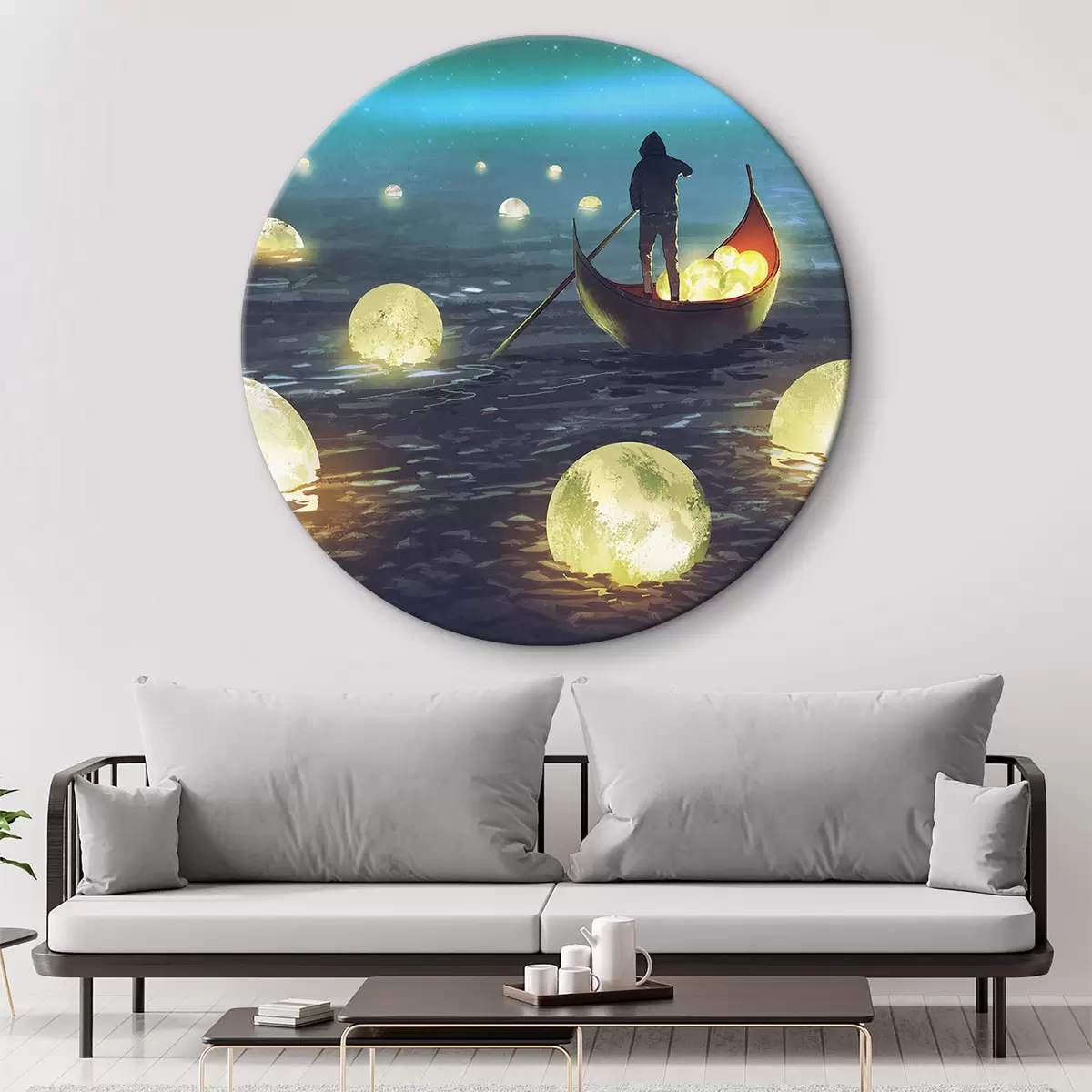 Obrázok Muž v člne na pozadí žiariaceho mesiaca Nr r34544