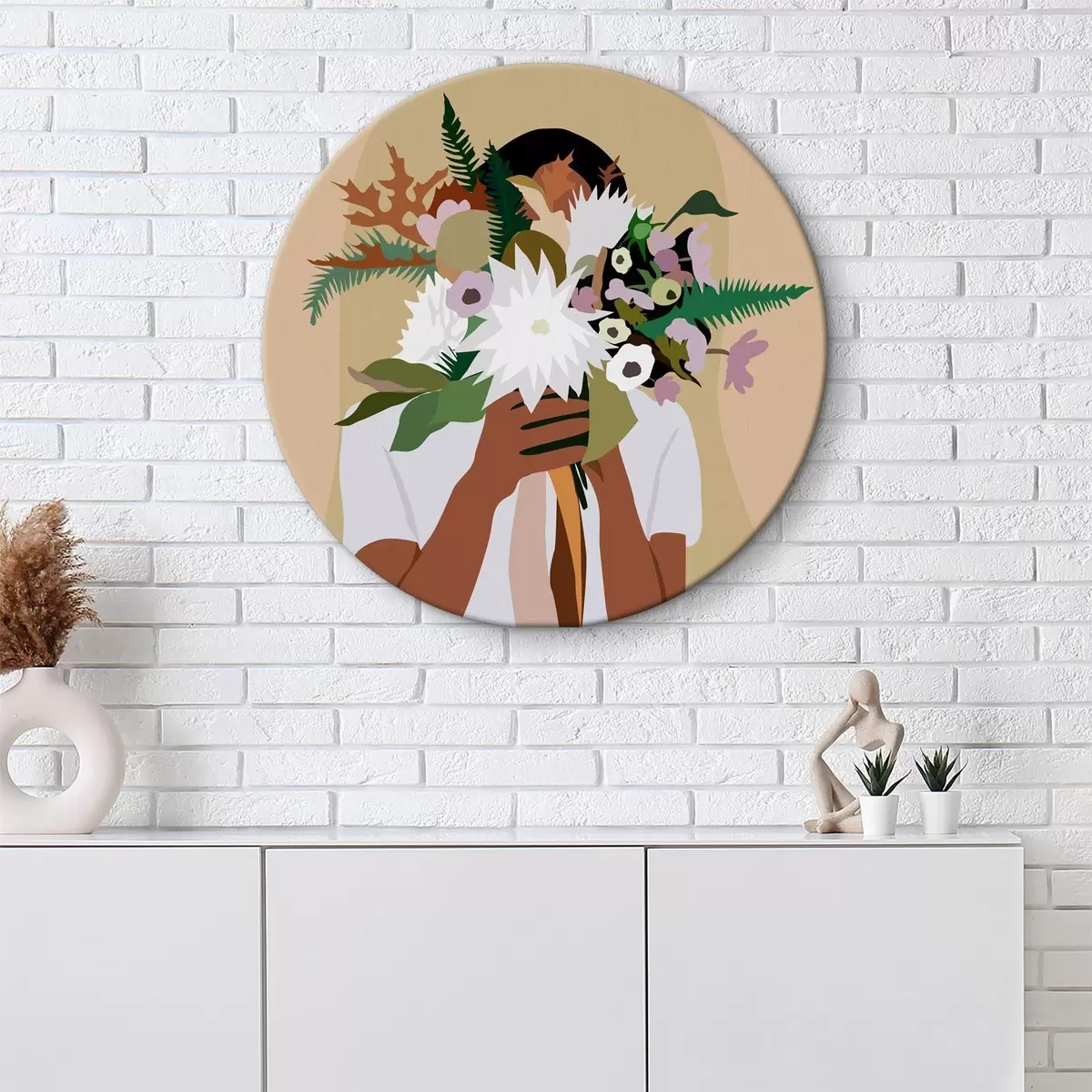 Obrázok Dievča s kyticou kvetov abstraktný boho štýl Nr r36367