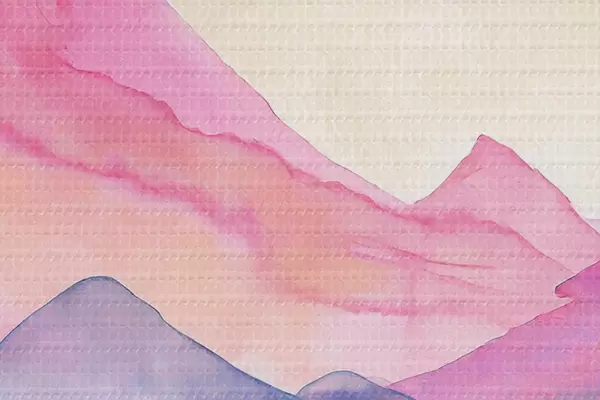 Obrázok Akvarel Horská krajina, východ slnka, jemné fialové, ružové a modré farby Nr r36496