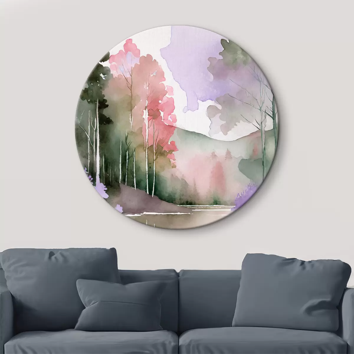 Obrázok Akvarel Jazero a lesná krajina, jar, jemné prírodné farby Nr r36501