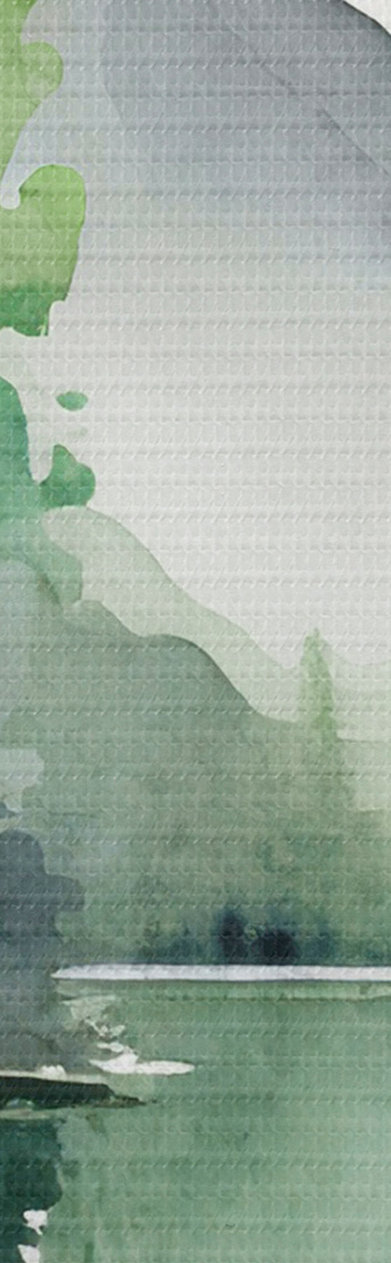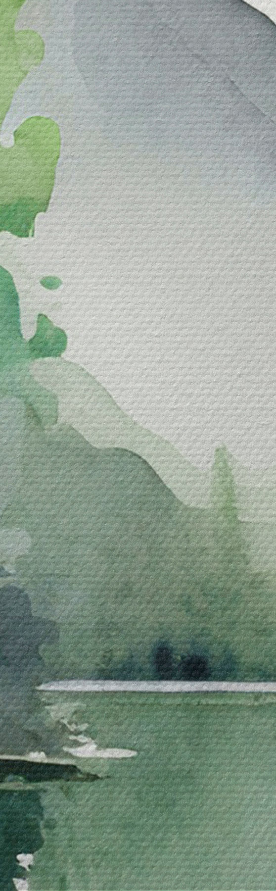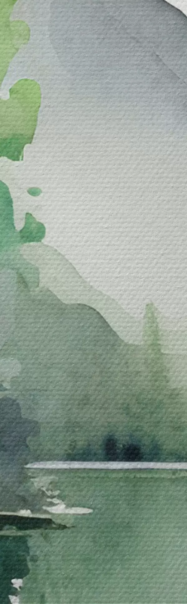 Obrázok Akvarel krajina jazera a lesa, jar, prírodné zelené mäkké farby Nr r36503