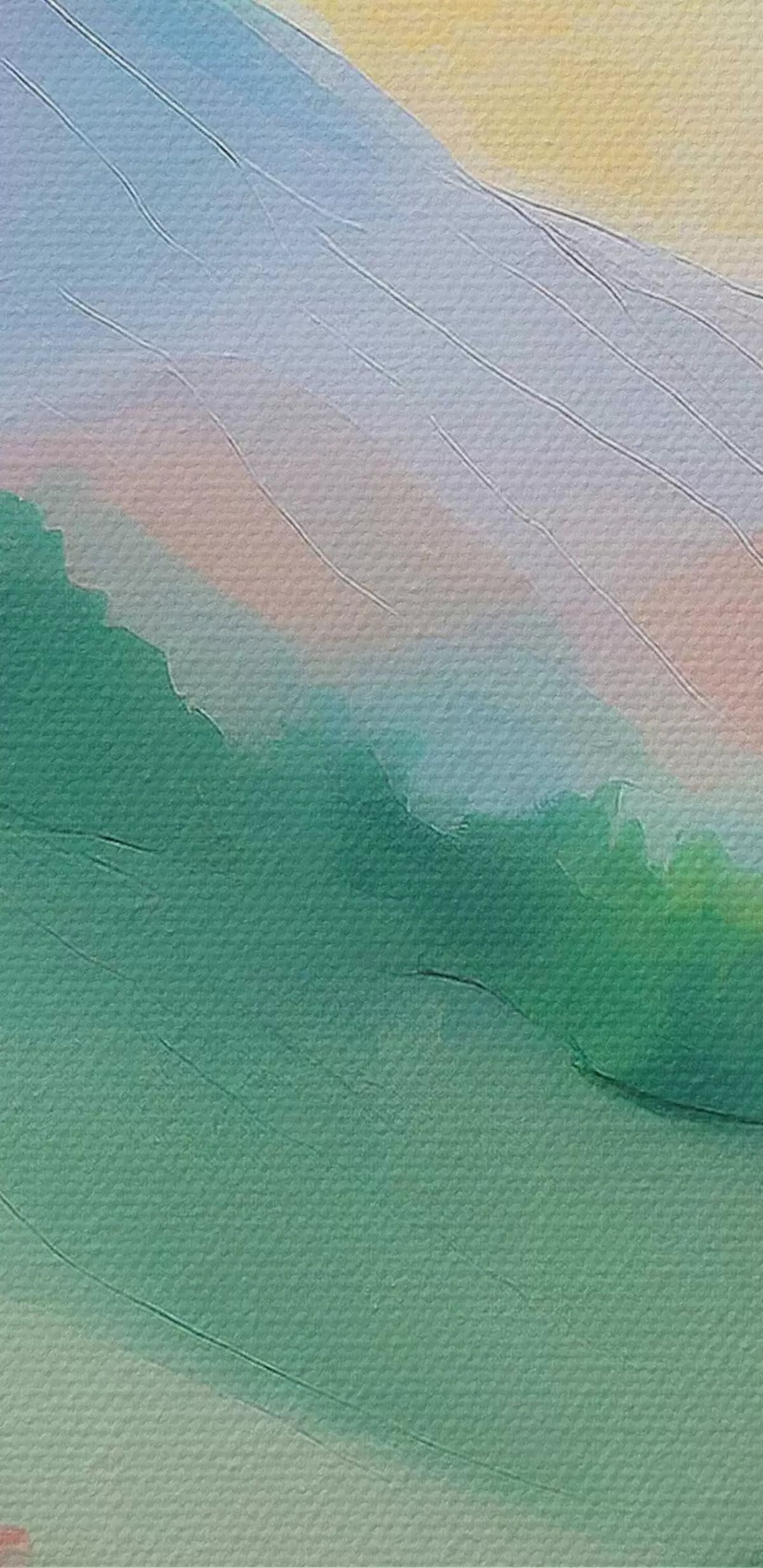 Obrázok Akrylová kresba Prírodná krajina, farby západu slnka, hory, stromy, lúka Nr r36505