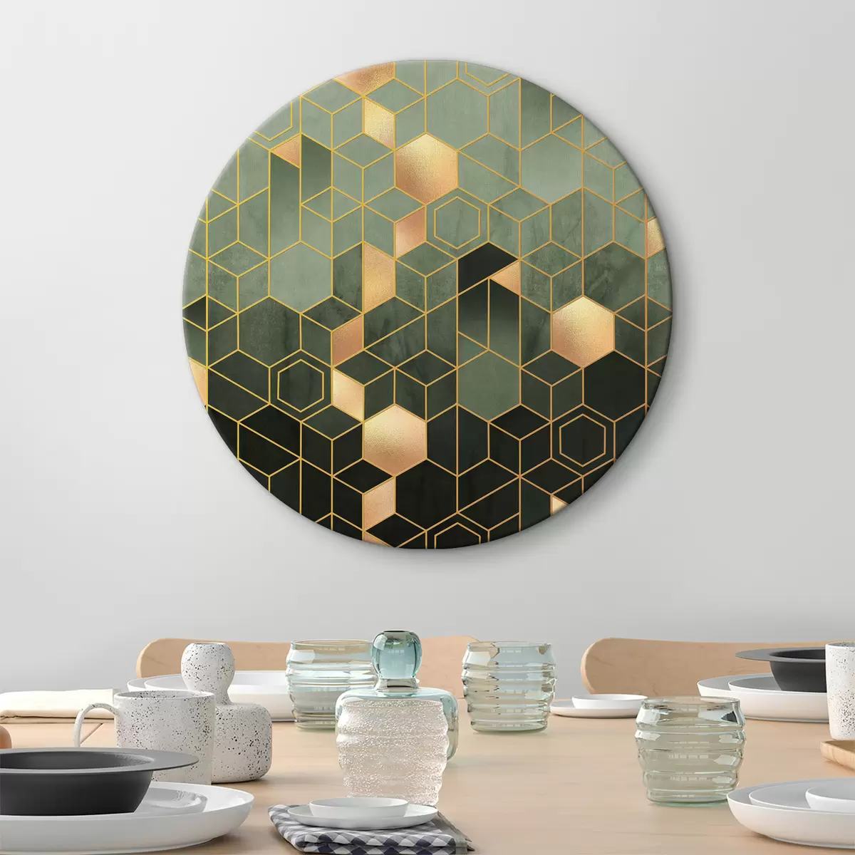Okrúhle obrazy Smaragdová a jantárová geometrická elegancia r36602v2