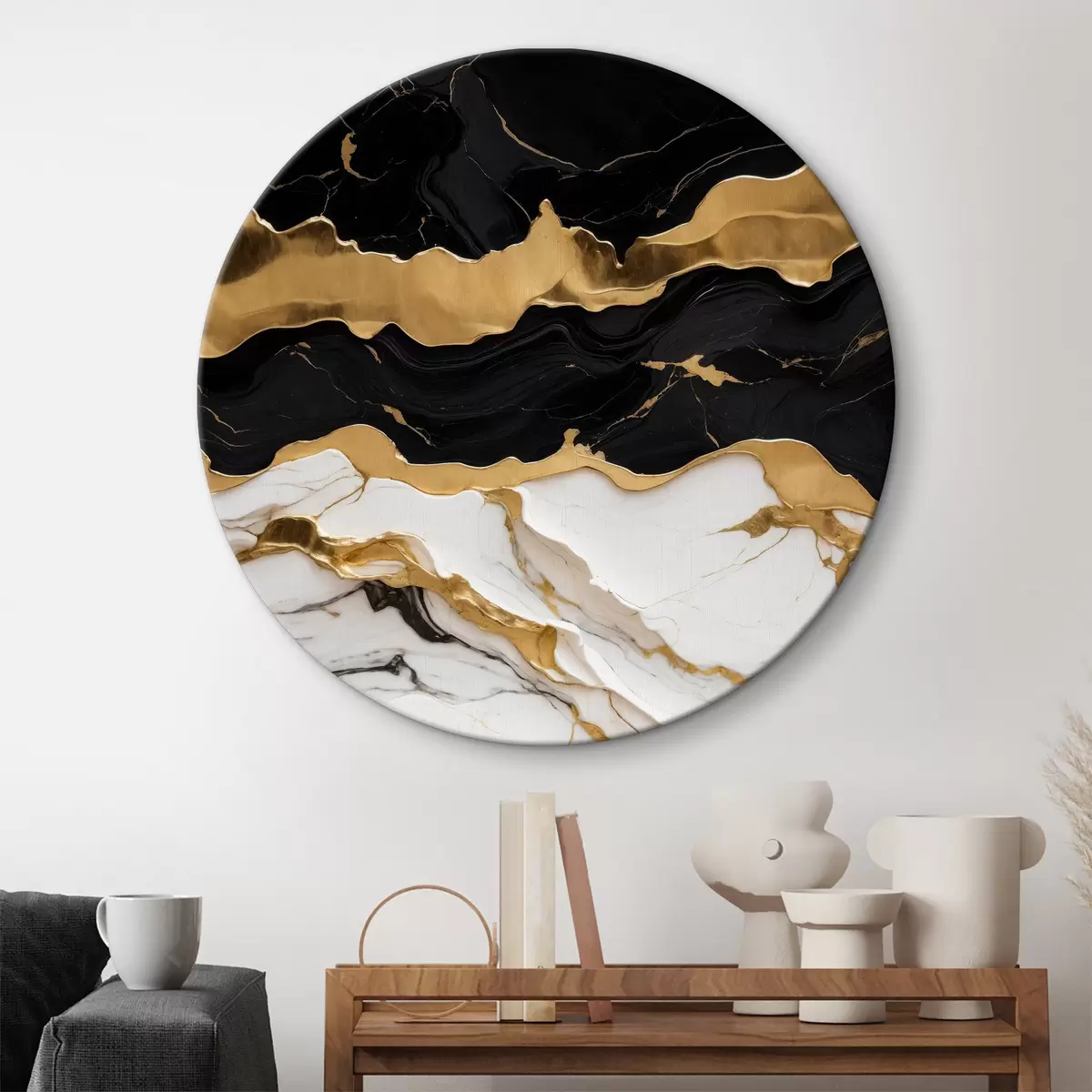 Obrázok Čiernobiela abstrakcia na mramore so zlatou linkou Nr r36636