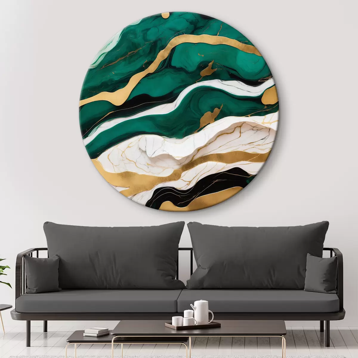 Obrázok Akvarelová abstrakcia na mramore v zelenej, bielej a zlatej farbe Nr r36645