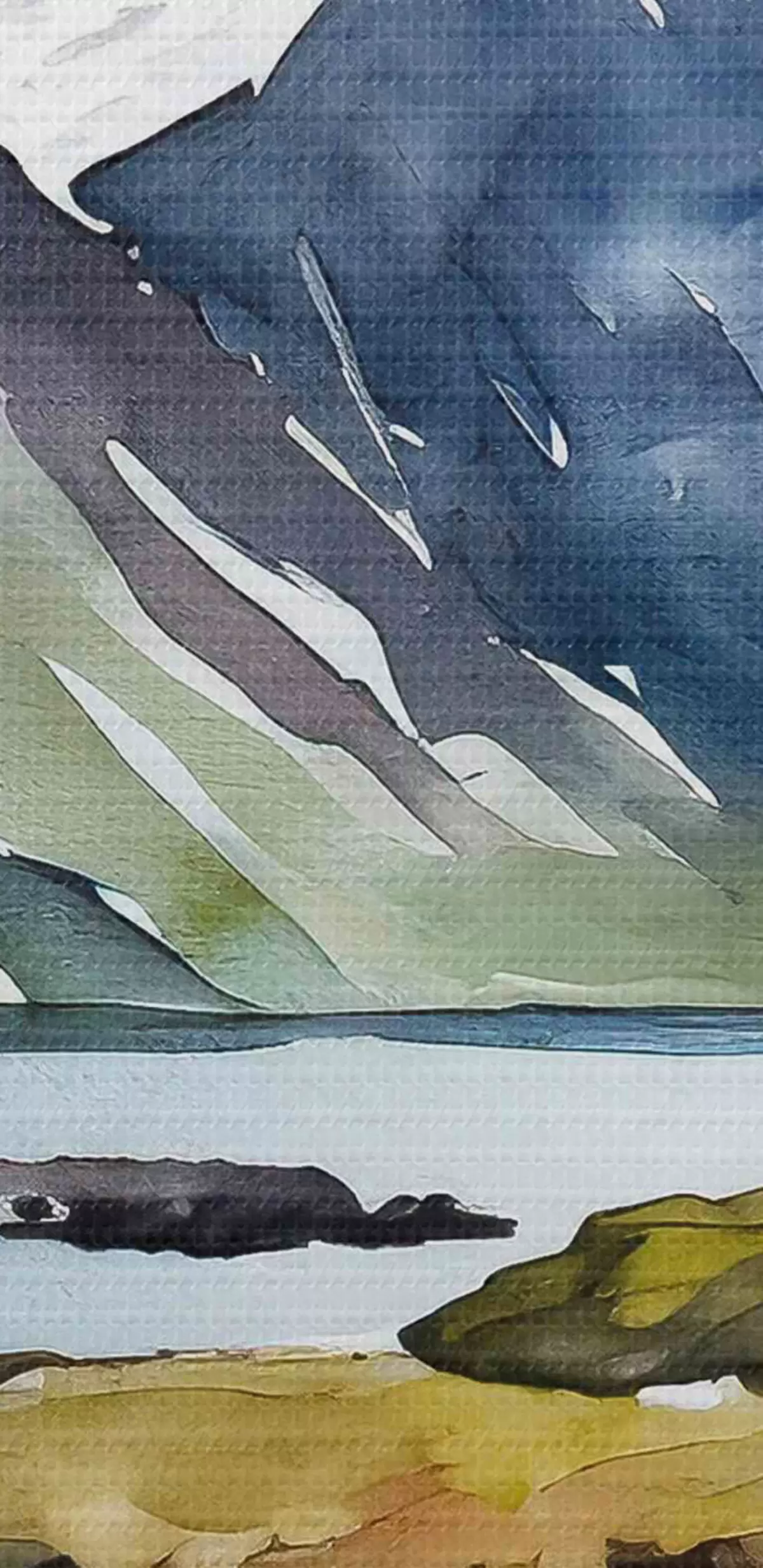 Obrázok Akvarel zobrazujúci jazero a hory Nr r36679
