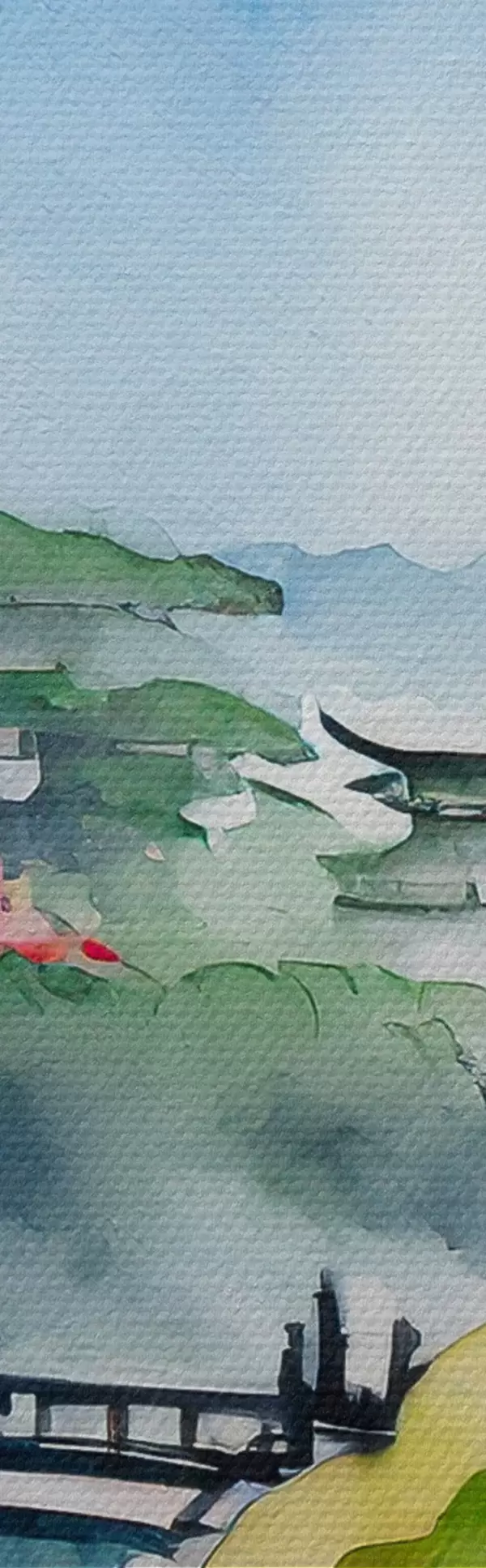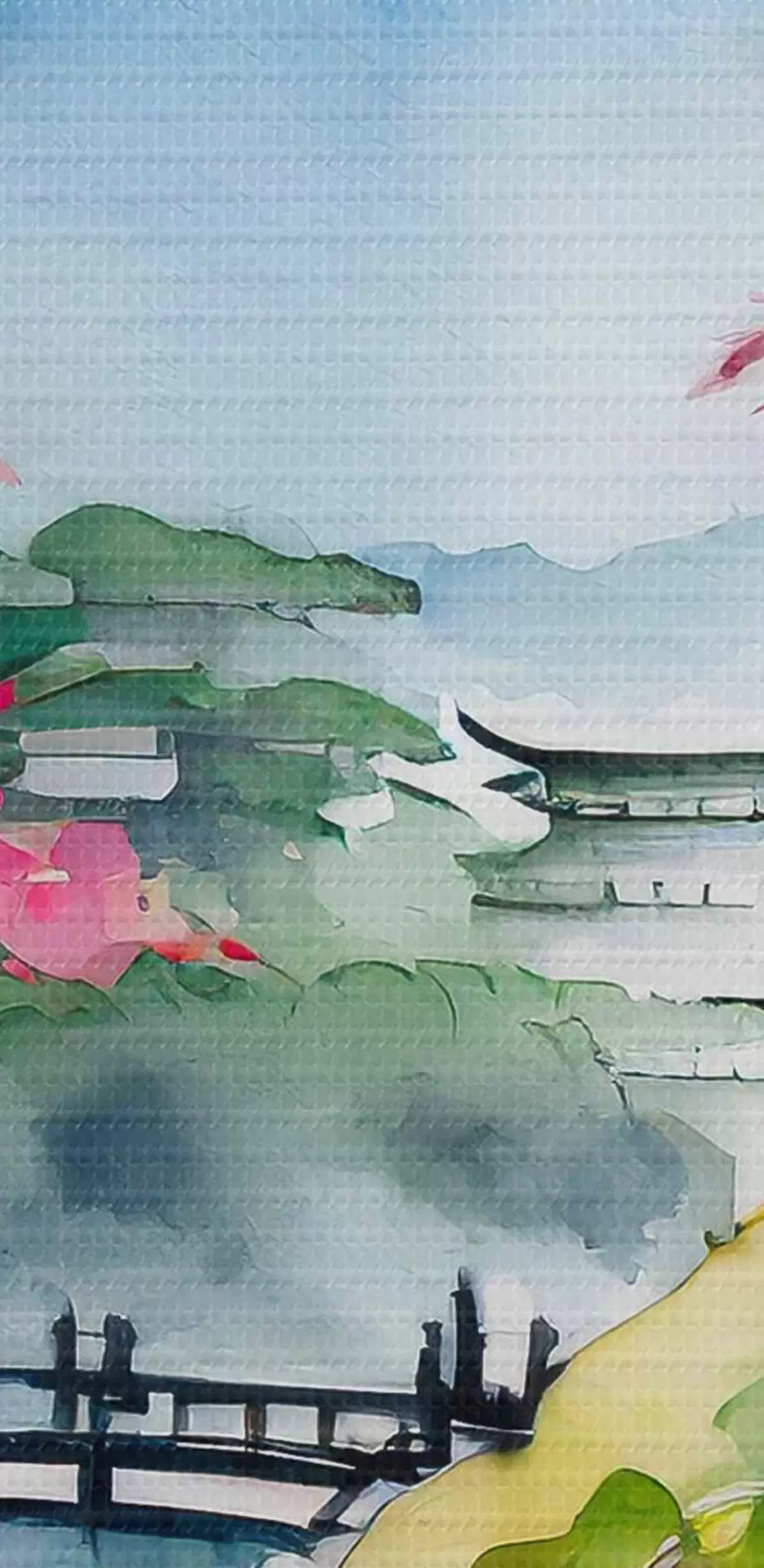 Obrázok Akvarel Japonsko, čerešňa, hory Nr r36691