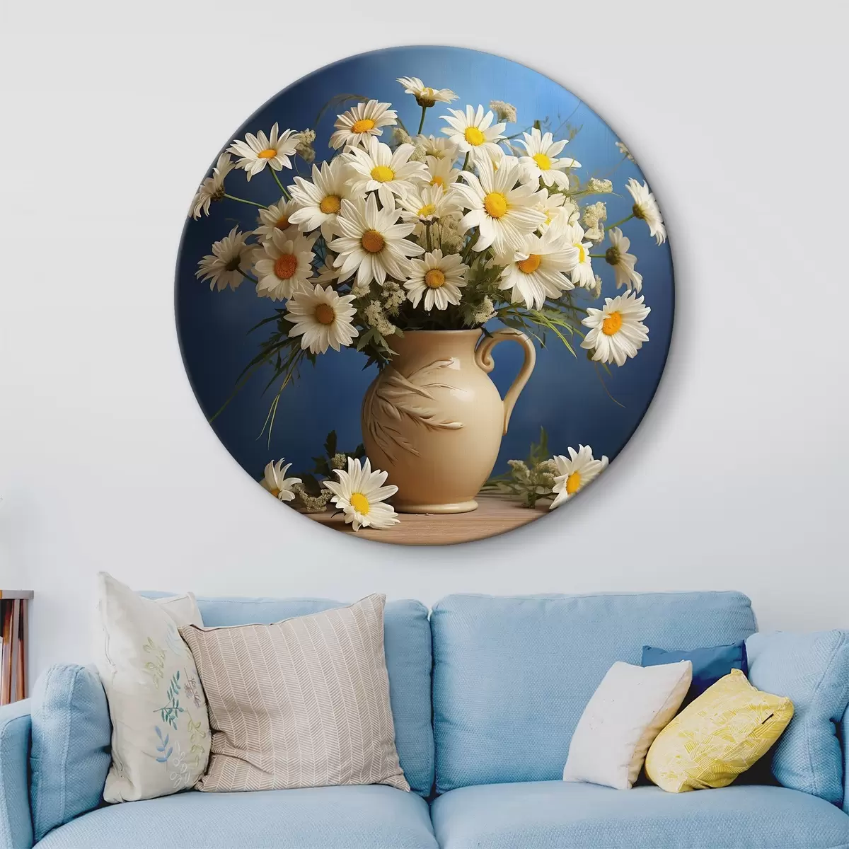Obrázok Nádherná kytica bielych sedmokrások na modrom pozadí Nr r36814
