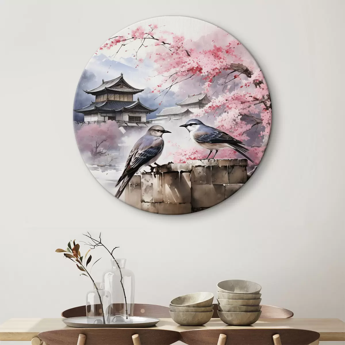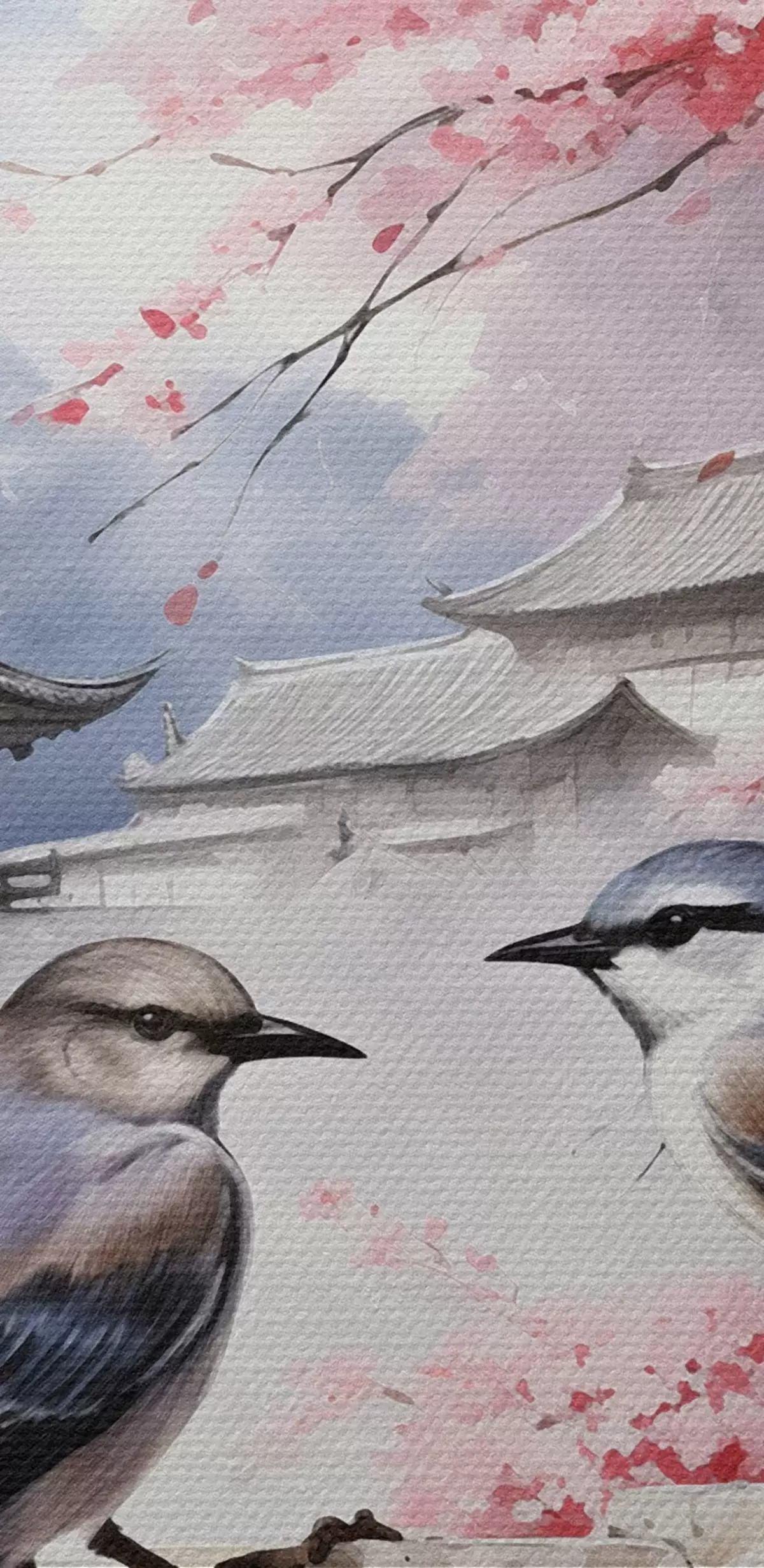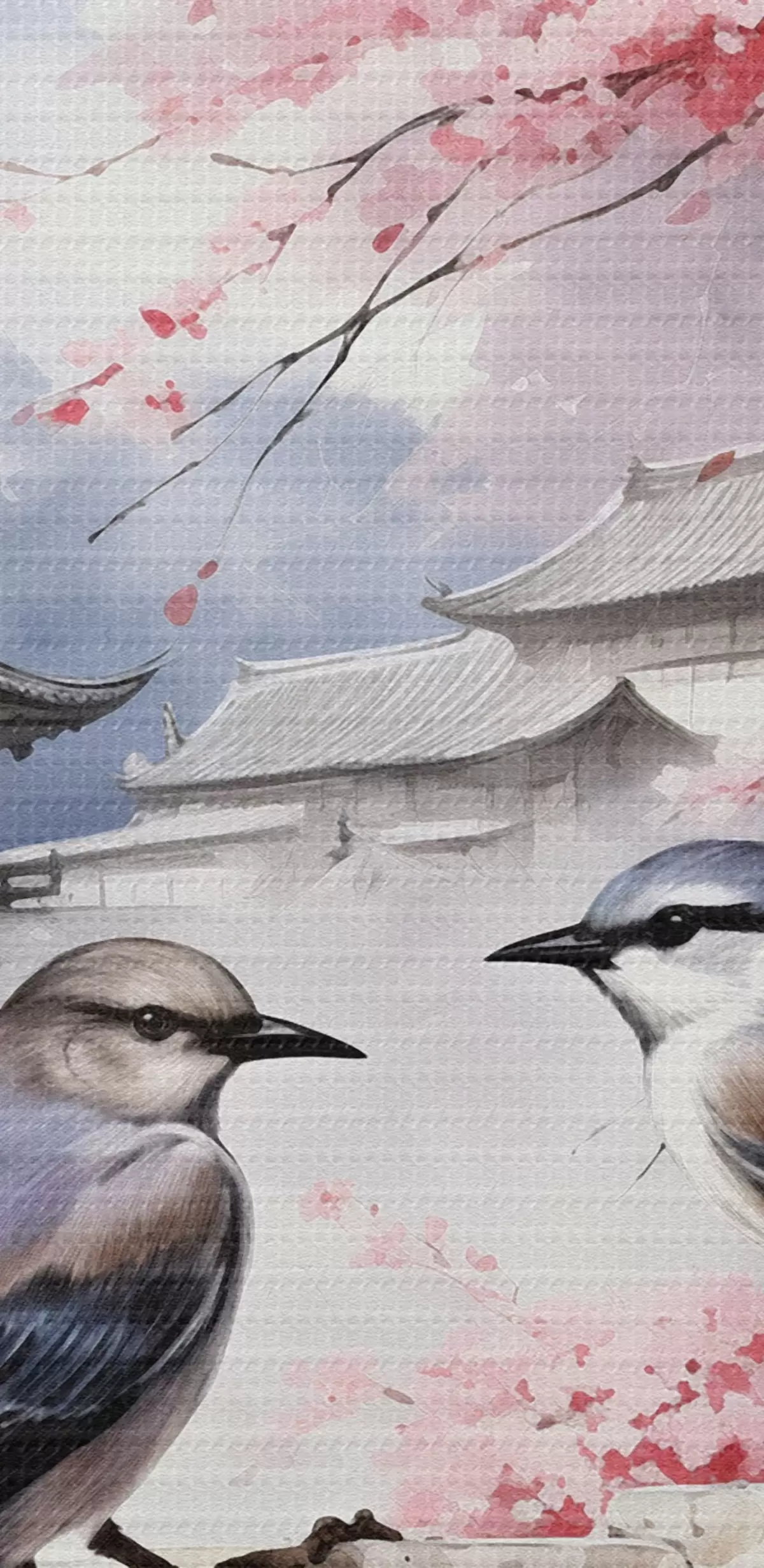Obrázok Dvaja vtáci na pozadí rozkvitnutej sakury Nr r36815