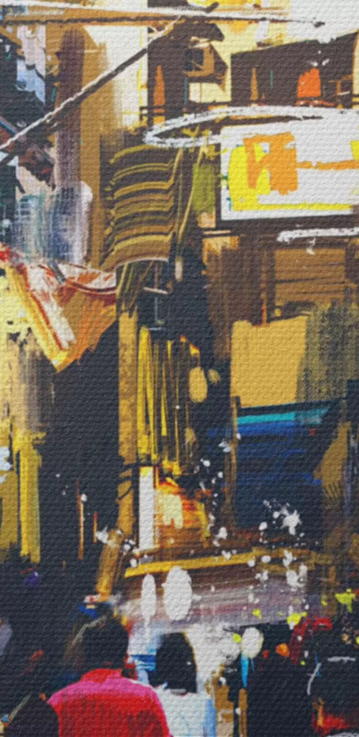 Obraz je možné zavesiť ihneď po jeho prevzatí. Obraz bude napnutý na drevených nosidlách so šírkou 2 cm.