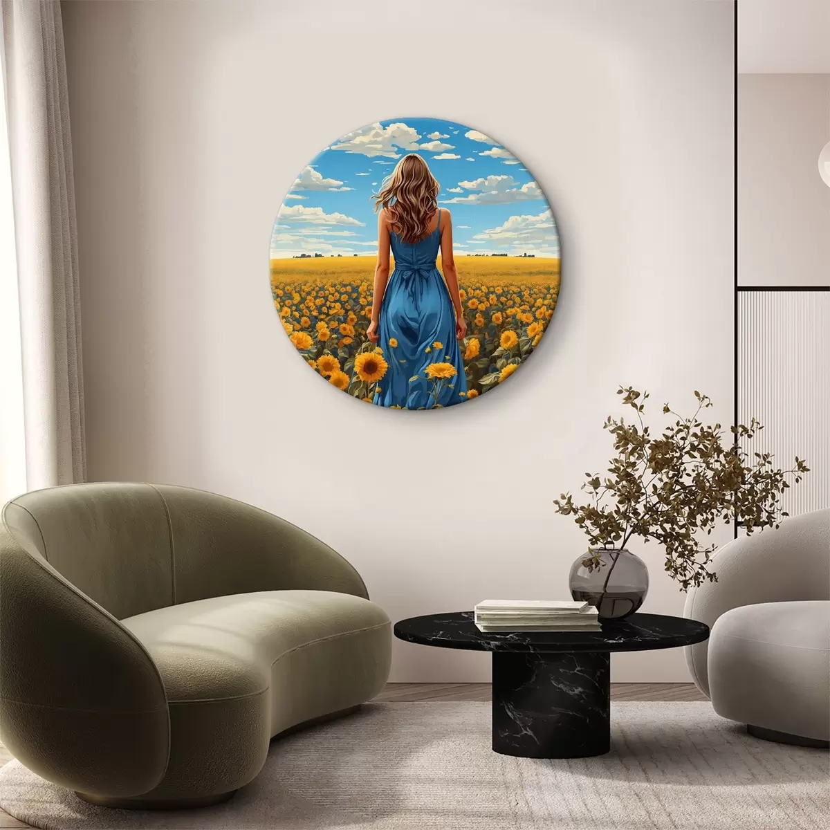 Obrázok Žena v modrých šatách na slnečnicovom poli Nr r37164