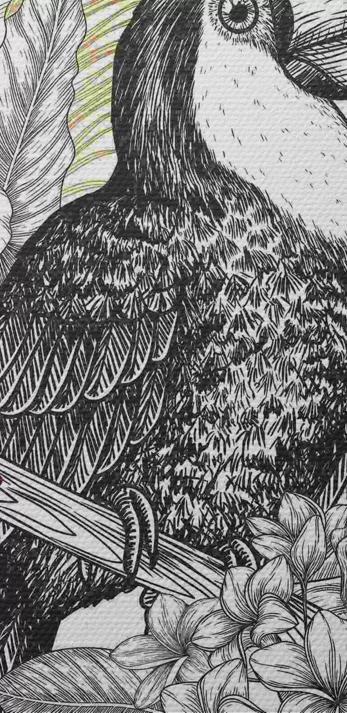 Obrázok Tukan s listami a kvetmi Nr r37303