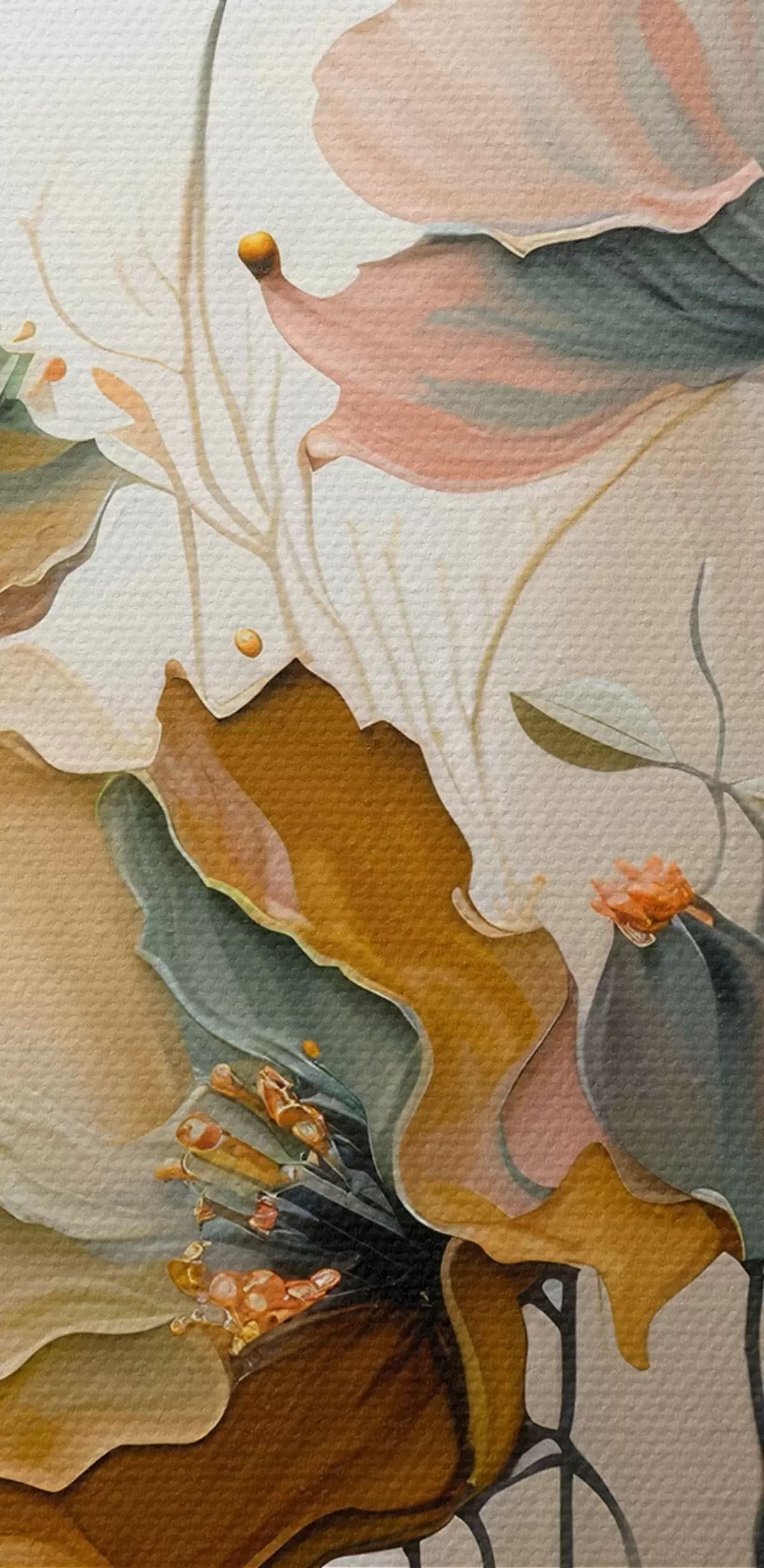 Na objednanie sú k dispozícii tri typy materiálu: Economic Canvas - hustý a odolný materiál na digitálnu tlač, identický s maliarskym plátnom, vodoodolný povrch, realistická reprodukcia detailov, stredne zrnitý materiál. Premium Canvas - štruktúra pripomína maliarske plátno (prepletené drobné vlákna). Mäkká, detailná reprodukcia obrazu na matnom povrchu. Eco-Premium - vysokokvalitná tkanina zo 100 % bavlny. Vďaka prírodným bavlneným vláknam je materiál trvanlivý a odolný voči opotrebovaniu. Vynikajúca reprodukcia farieb a detailov.