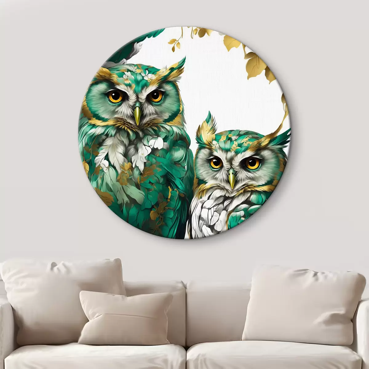 Obrázok Dve zelené sovy v zlatých listoch Nr r37569