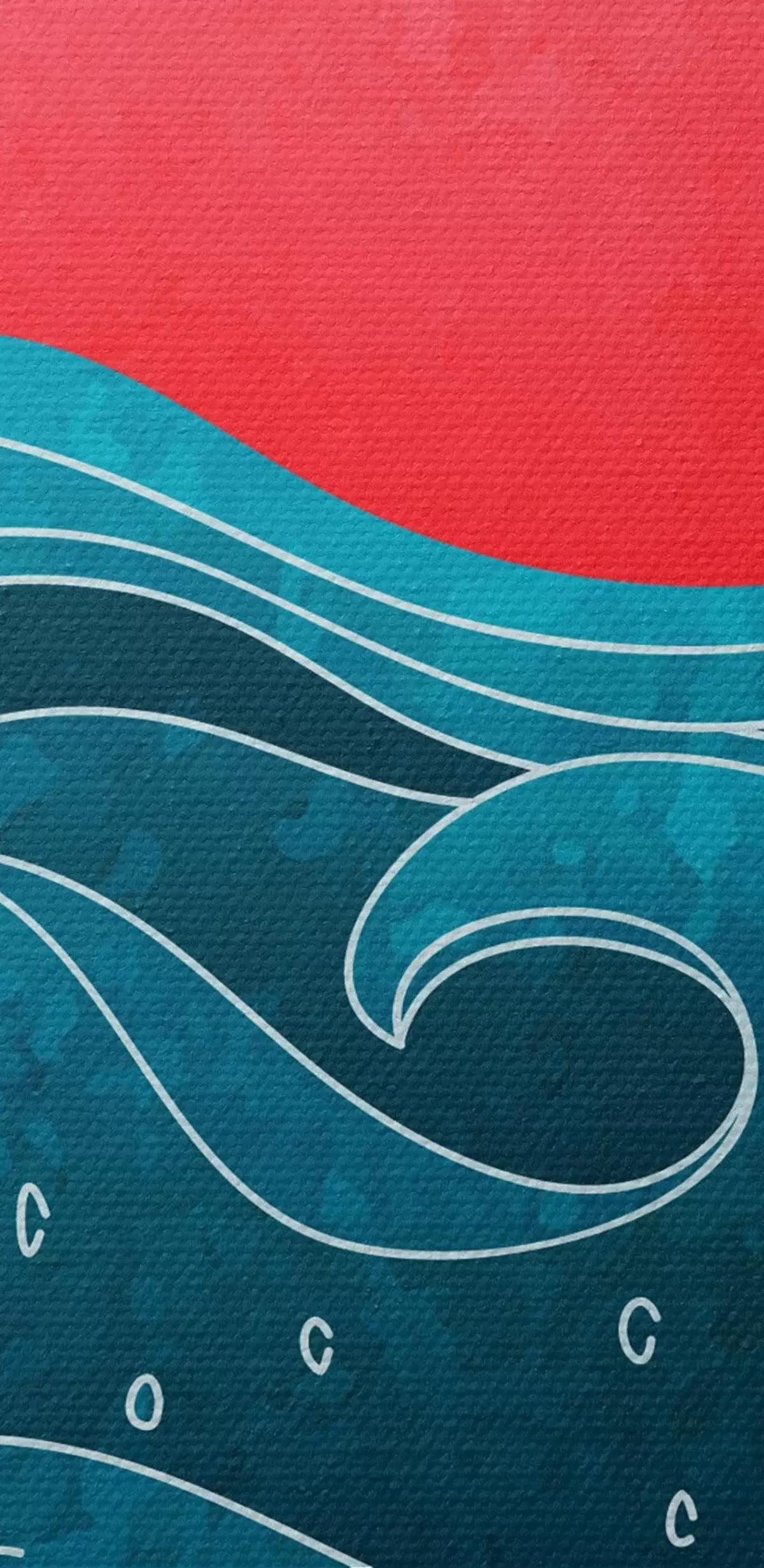 Obrázok Voda s vlnami a červeným slnkom Nr r37640