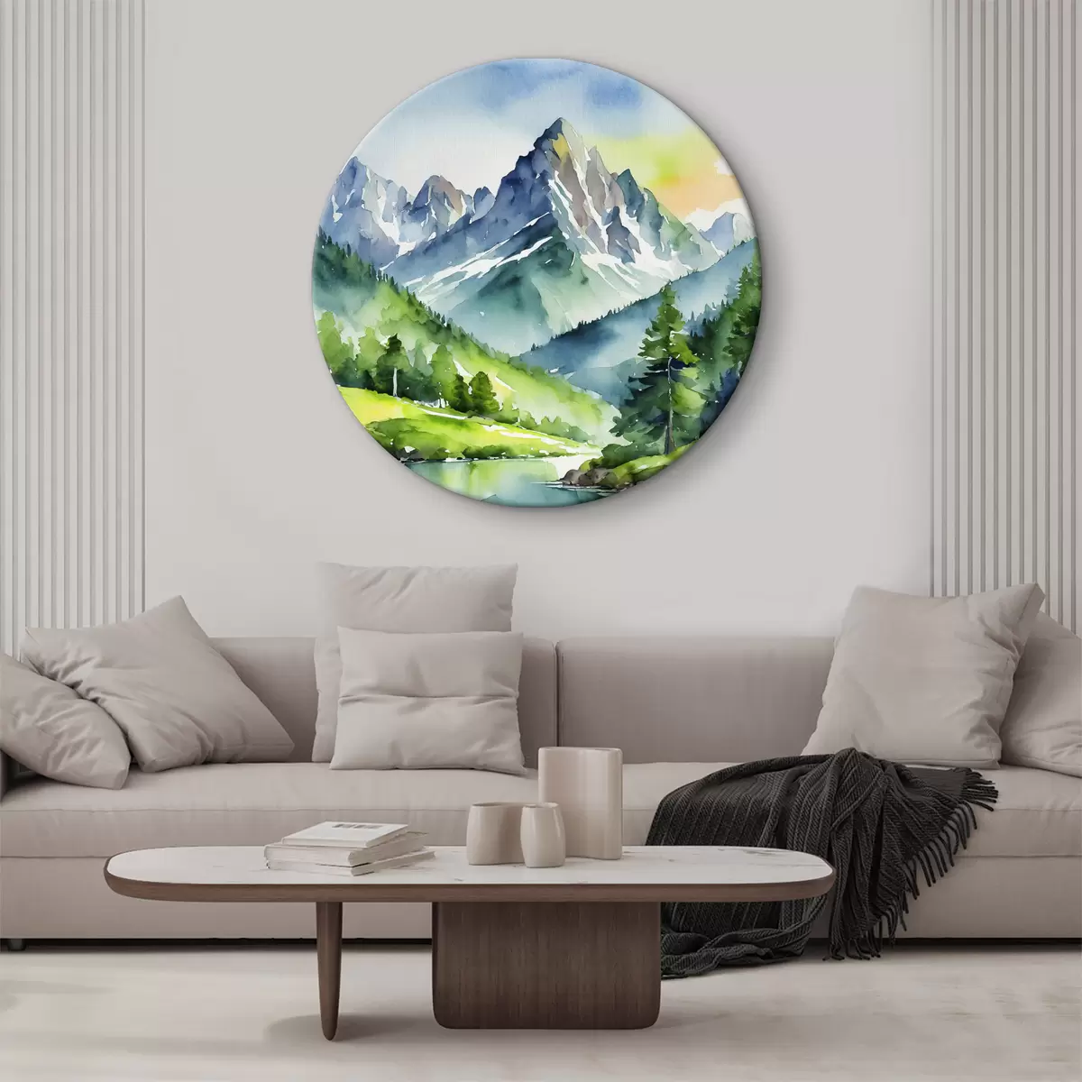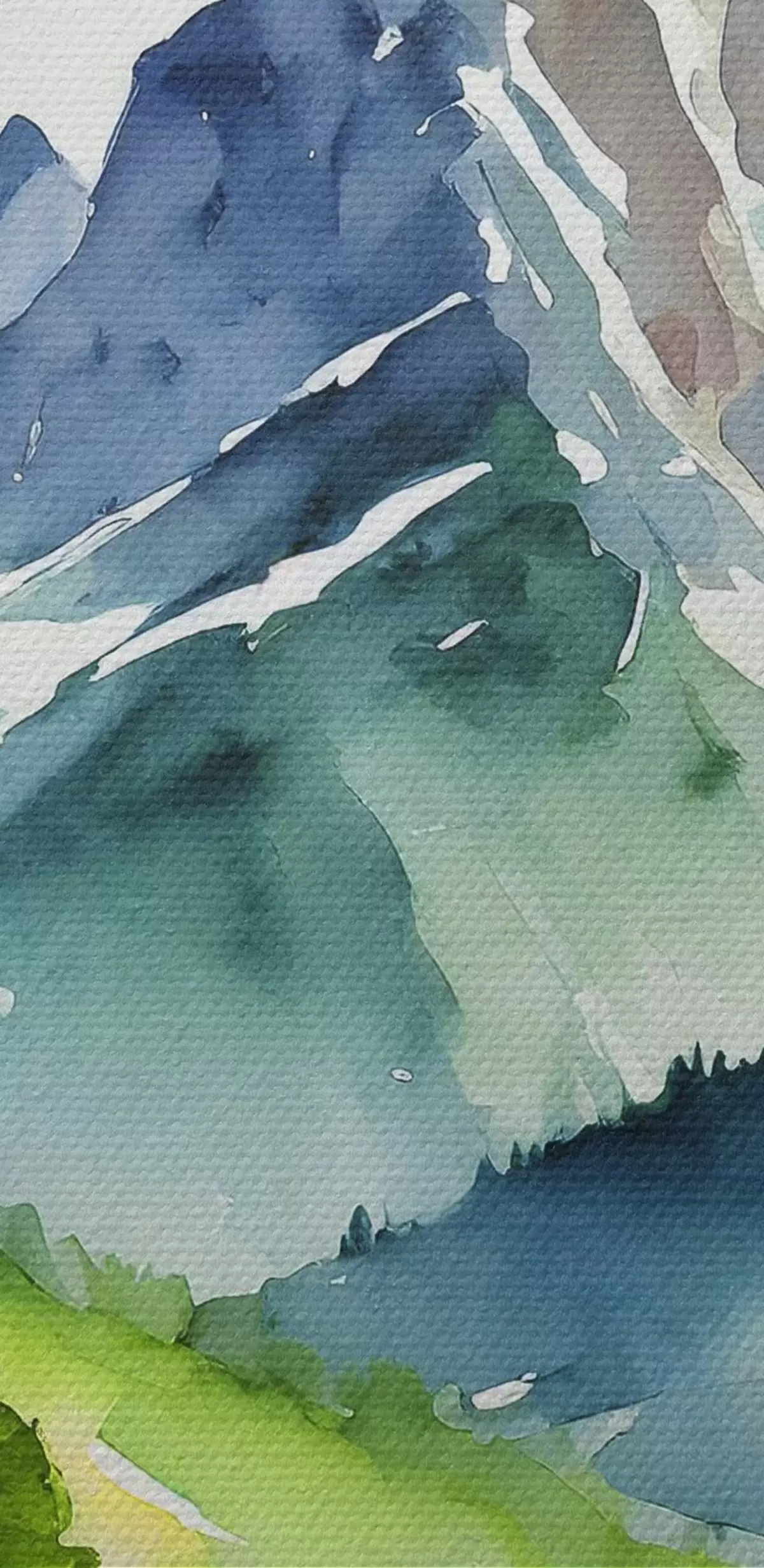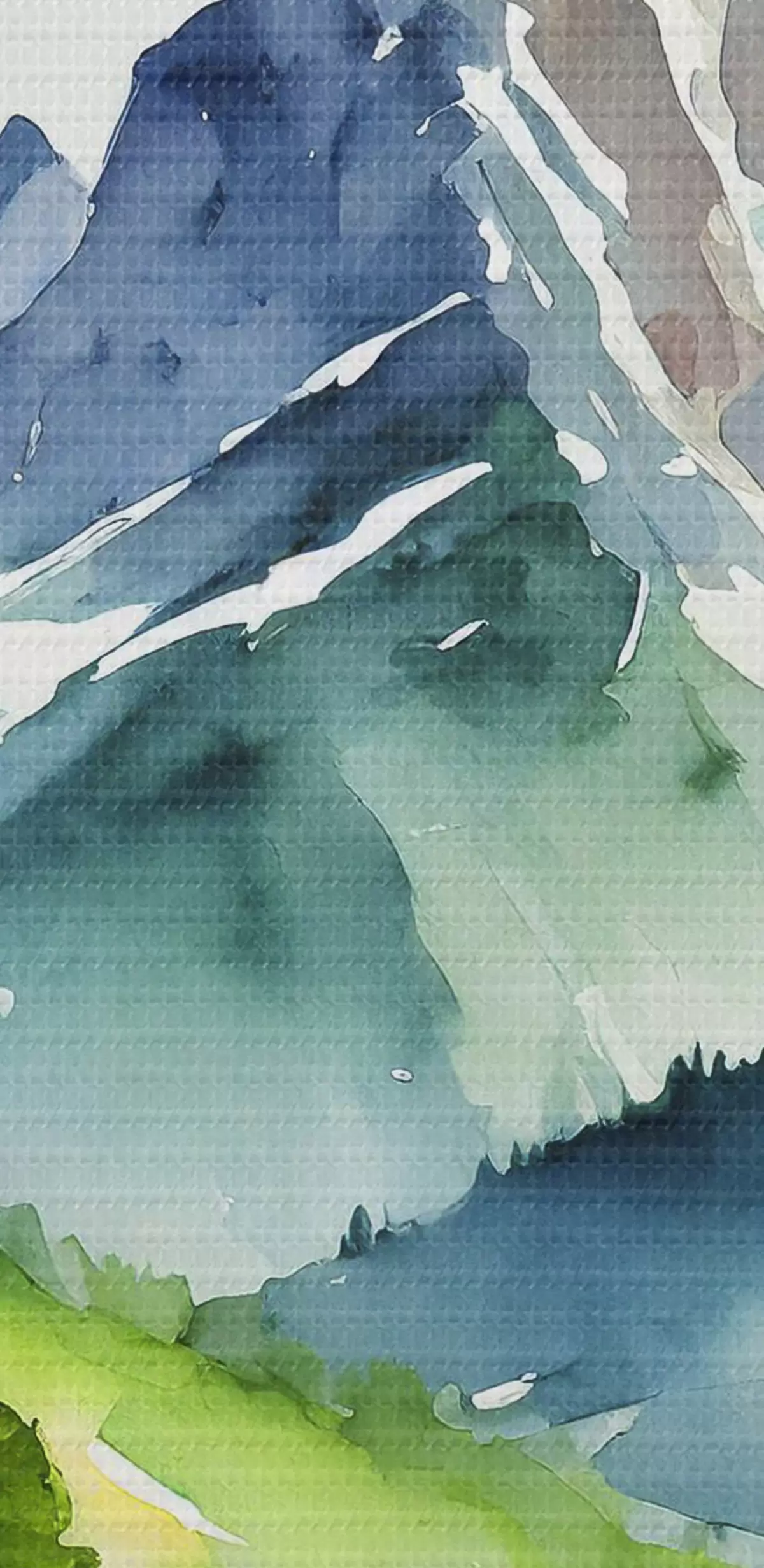 Obrázok Horská krajina s riekou, leto, zeleň, les, akvarel, západ slnka Nr r37960