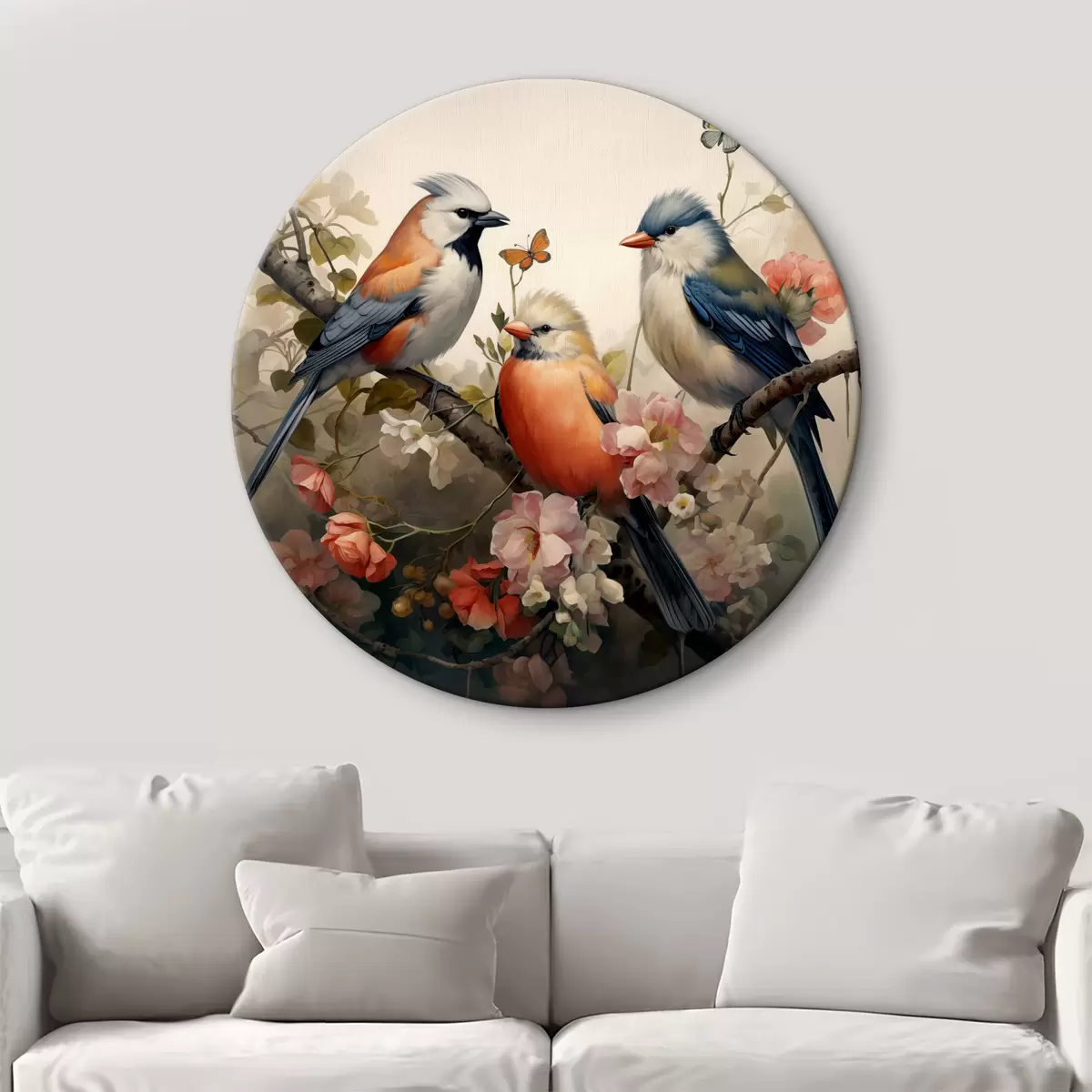 Obrázok Skupina vtákov na konári s kvetmi Nr r38103