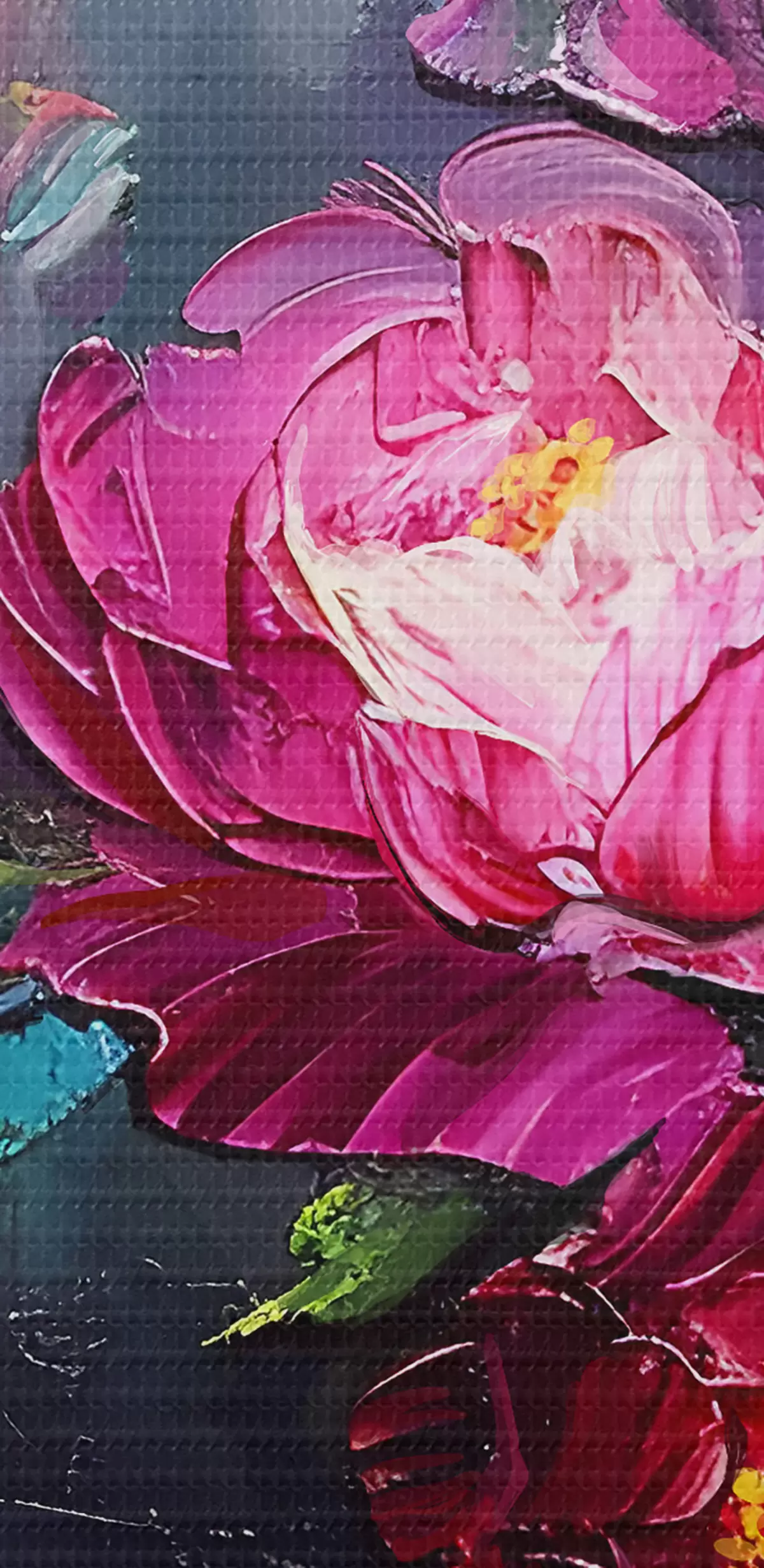 Obraz je možné zavesiť ihneď po jeho prevzatí. Obraz bude napnutý na drevených nosidlách so šírkou 2 cm.