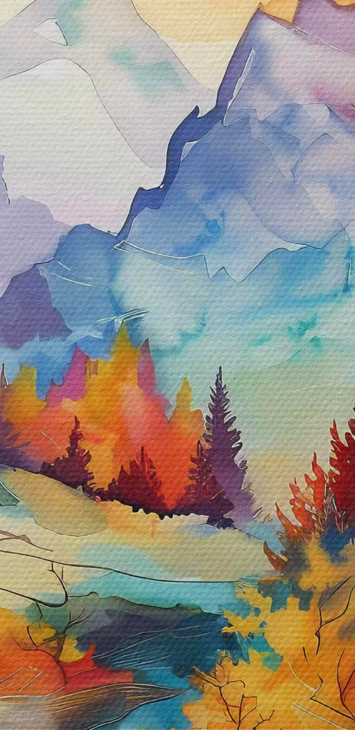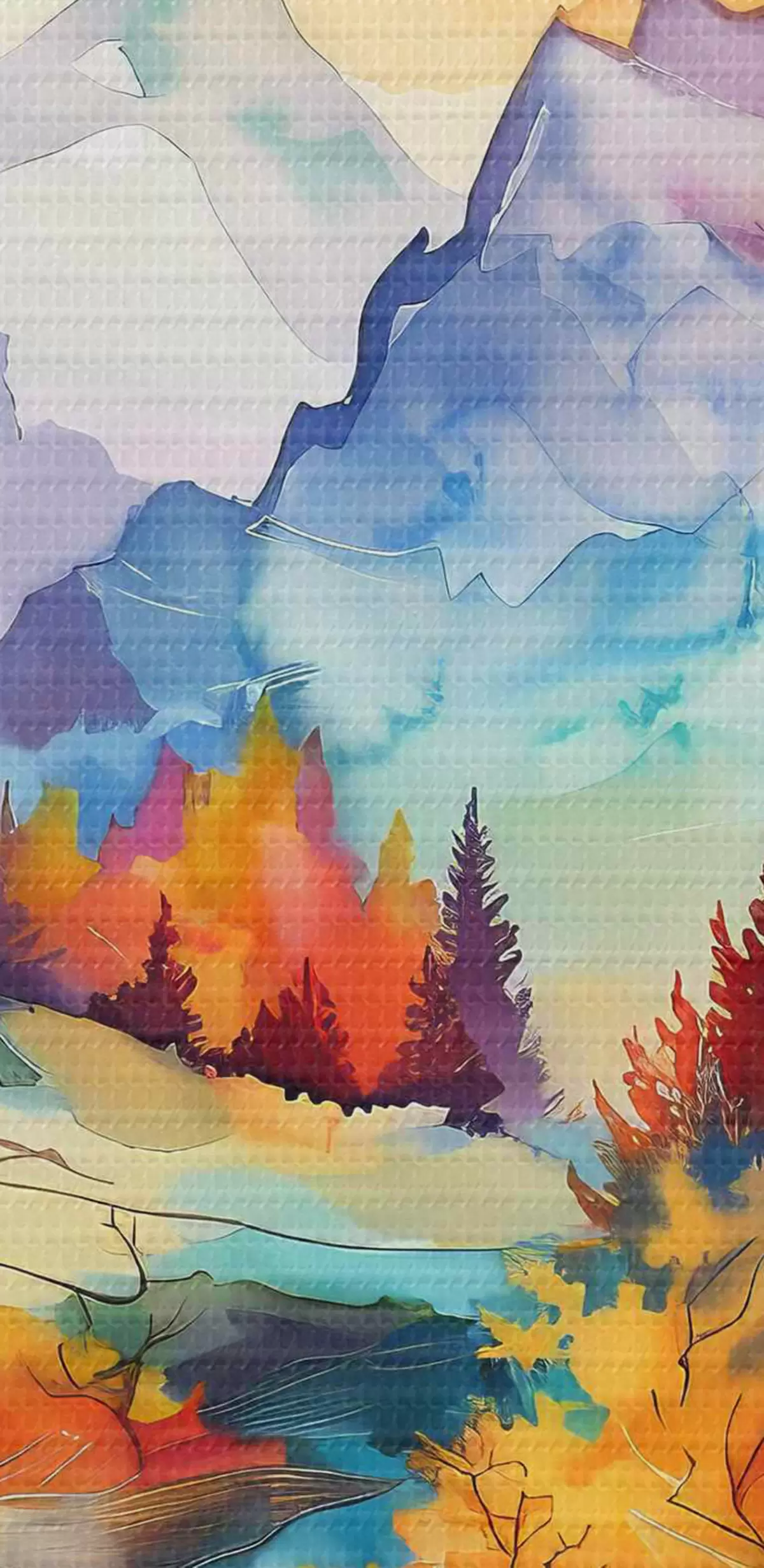 Obrázok Farebná horská krajina so stromami a riekou Nr r38145