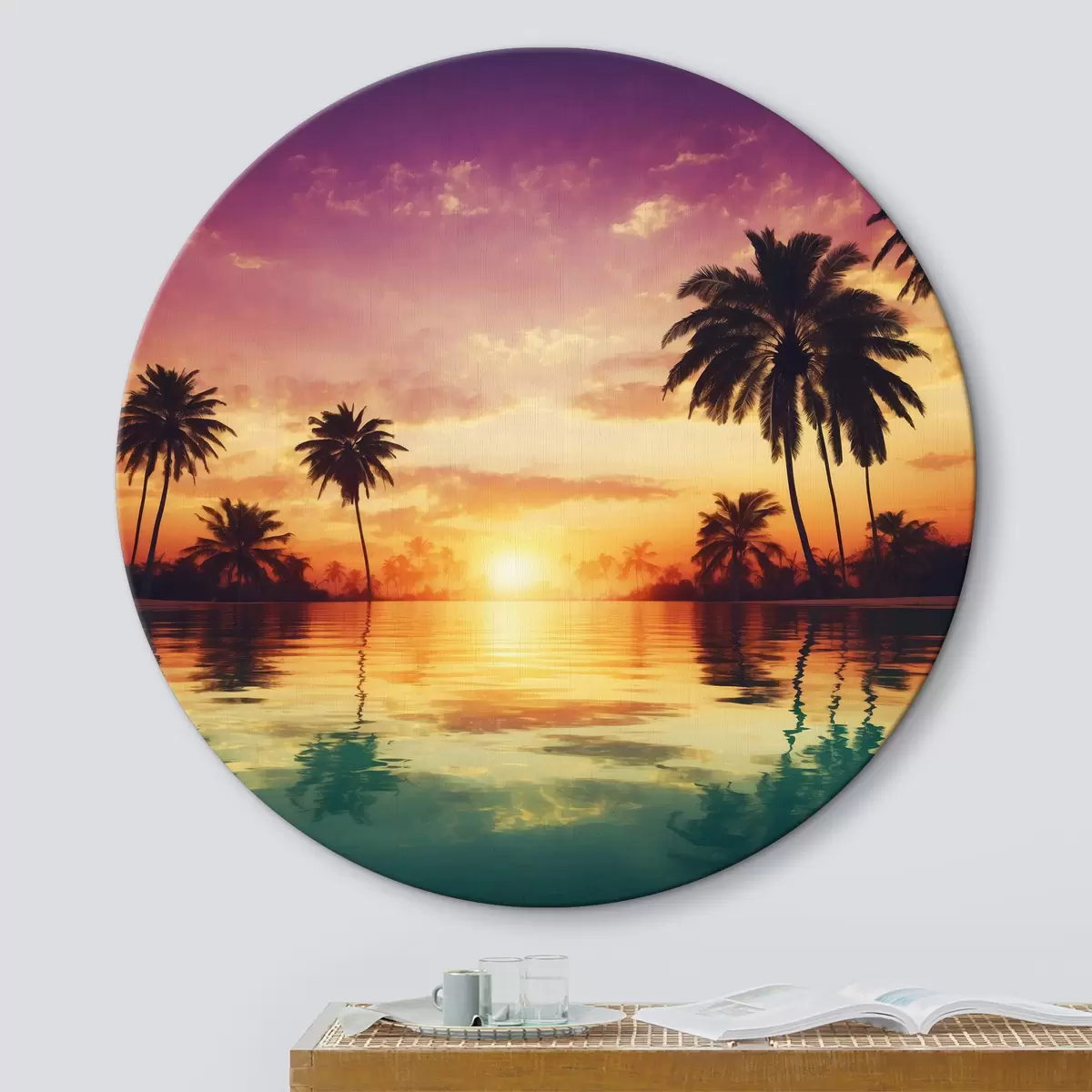 Obrázok Západ slnka nad nádržou s palmami Nr r38183