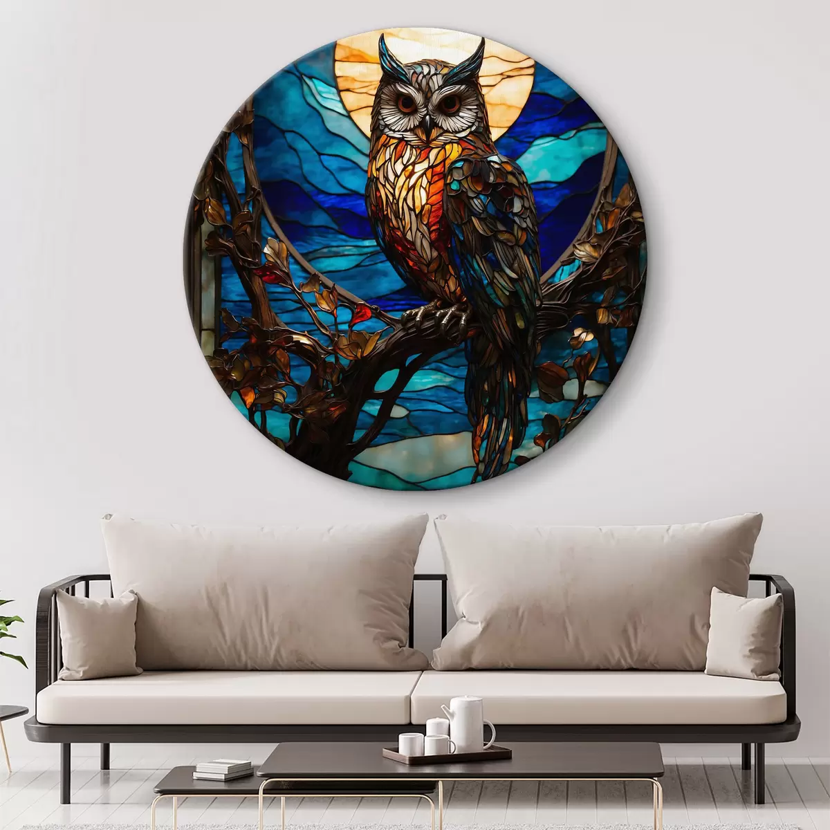 Obrázok Vitrážová sova na vetve stromu Nr r38185