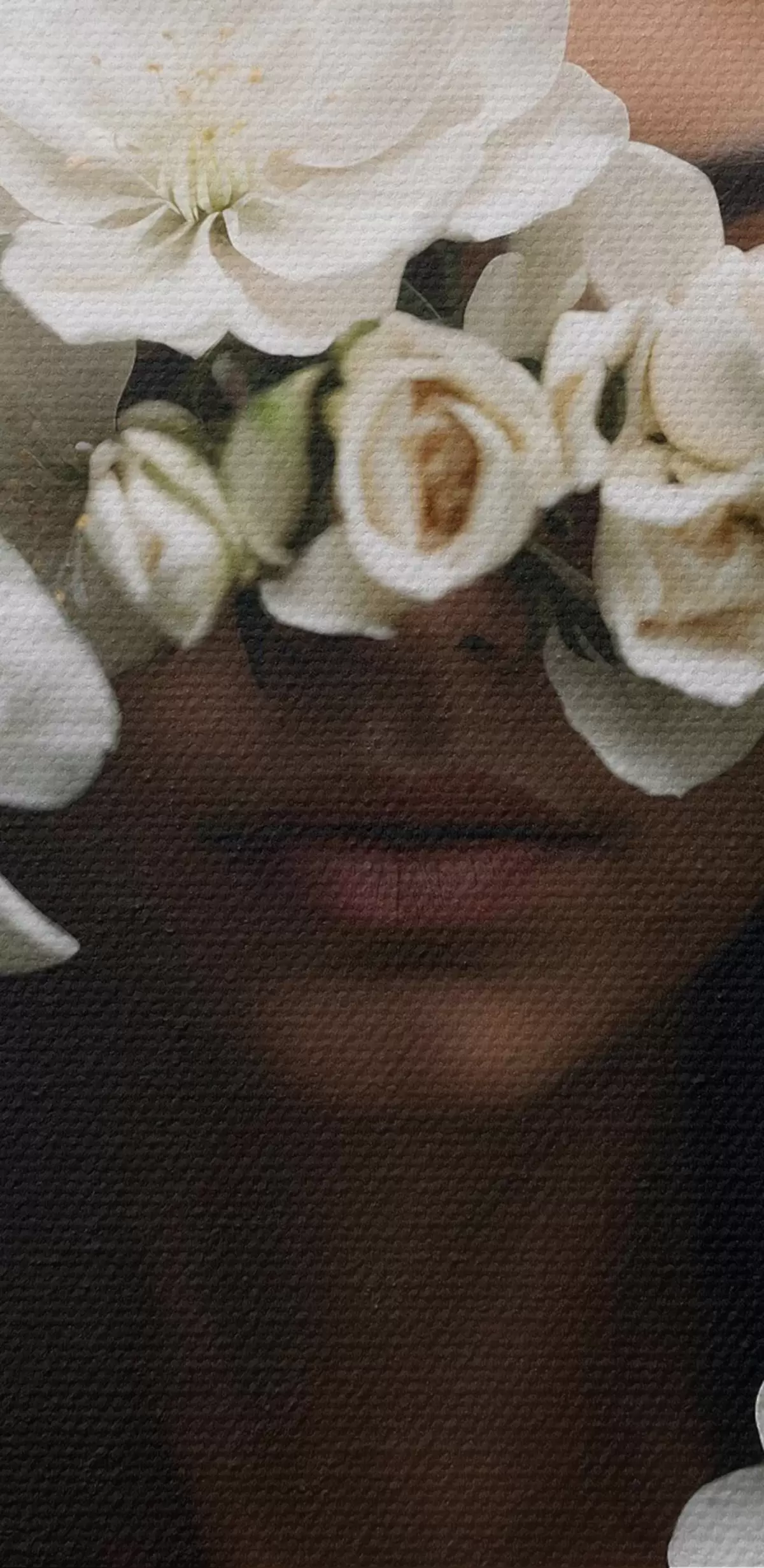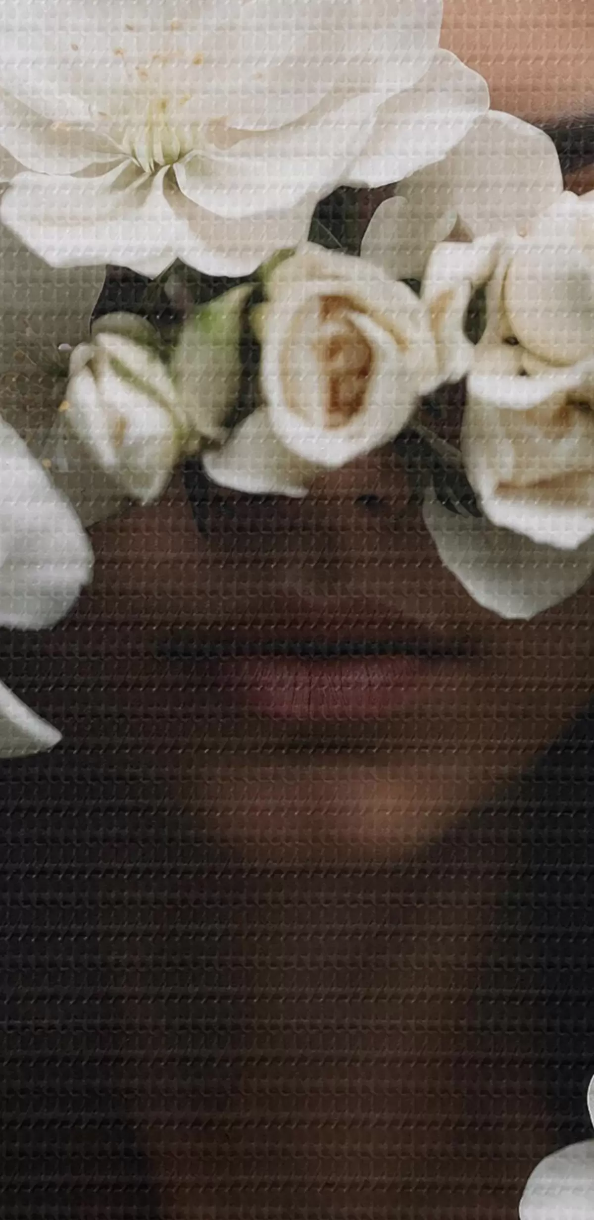 Obrázok Žena si skrýva tvár za bielymi kvetmi Nr r38194