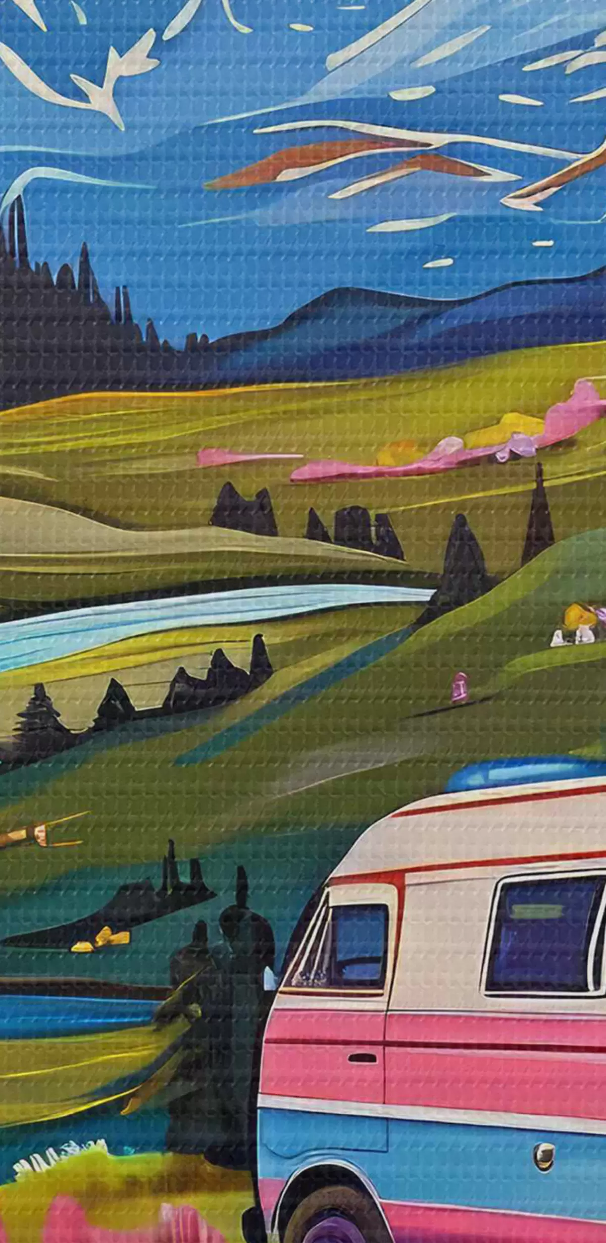 Obrázok Dodávka prechádzajúca údolím s kvetmi a horami Nr r38259