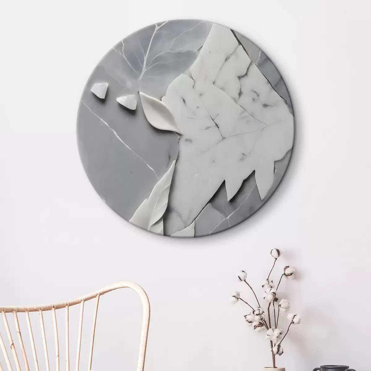 Obrázok Biely a sivý mramorový povrch s listami Nr r38272