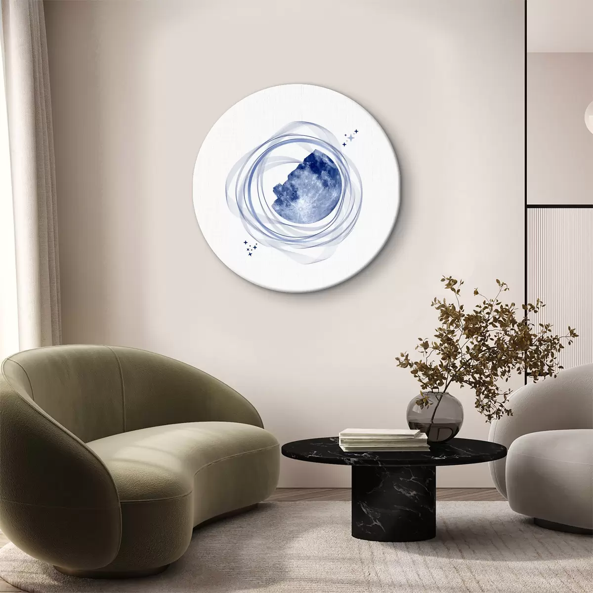 Obrázok Obežná dráha Mesiaca, kosáčik, minimalizmus, priestor, čas, zakrivené rozmazané čiary, hviezdy, galaxia, modrá farba Nr r38280