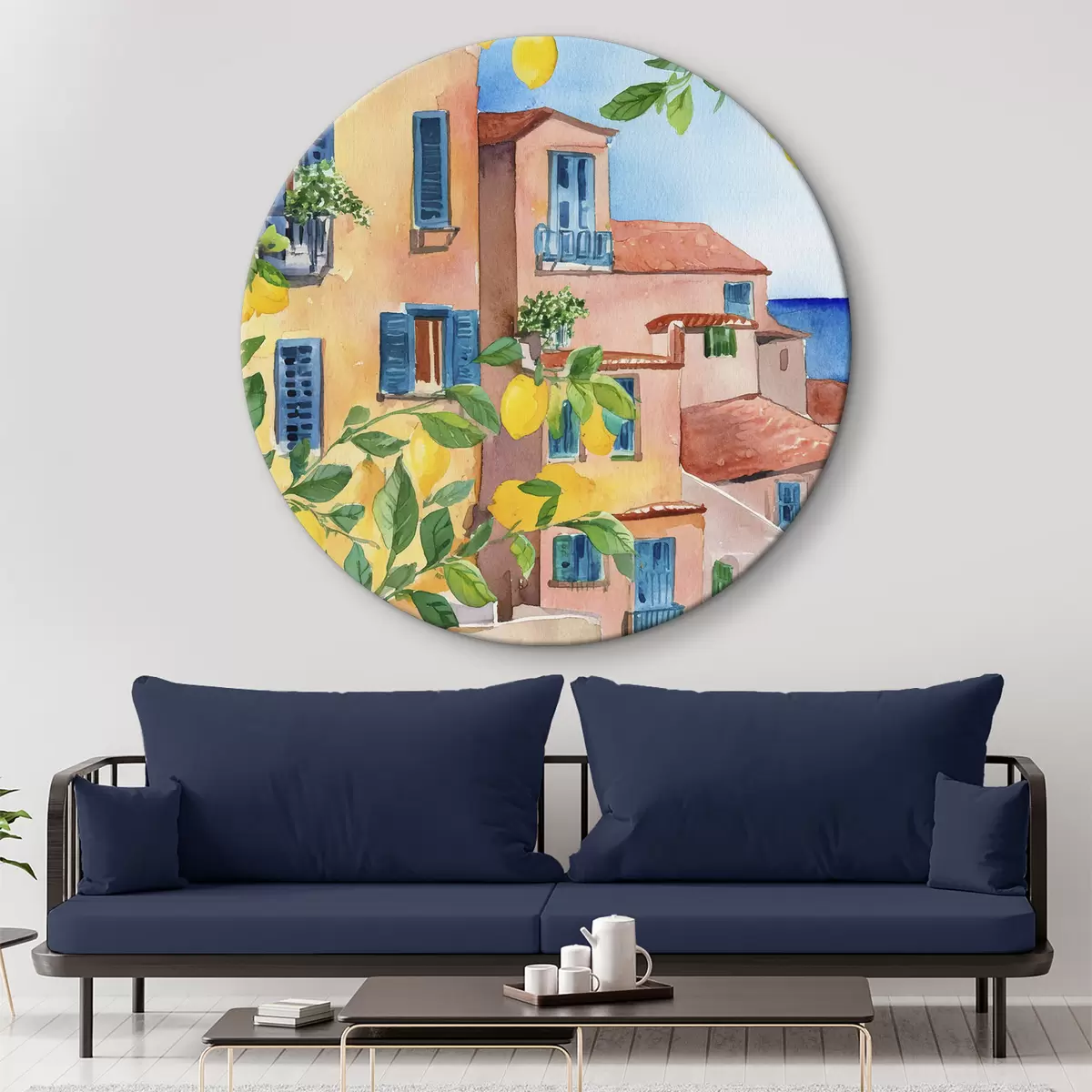 Obrázok Talianska mestská architektúra, morské pobrežie, leto, akvarel, citrónovník Nr r38395