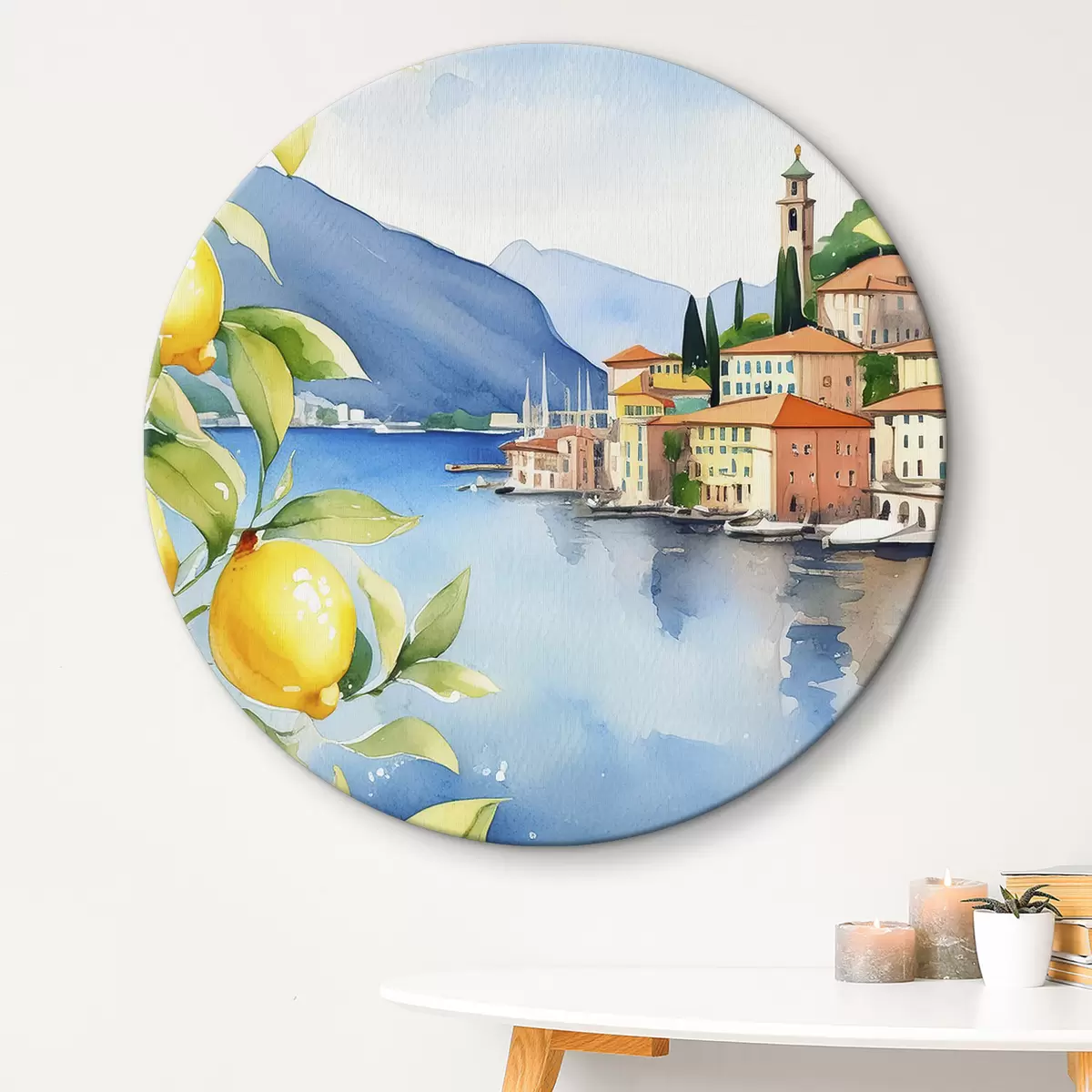 Obrázok Talianske jazero, leto, akvarel, prírodná krajina, citróny, mestská architektúra Nr r38397