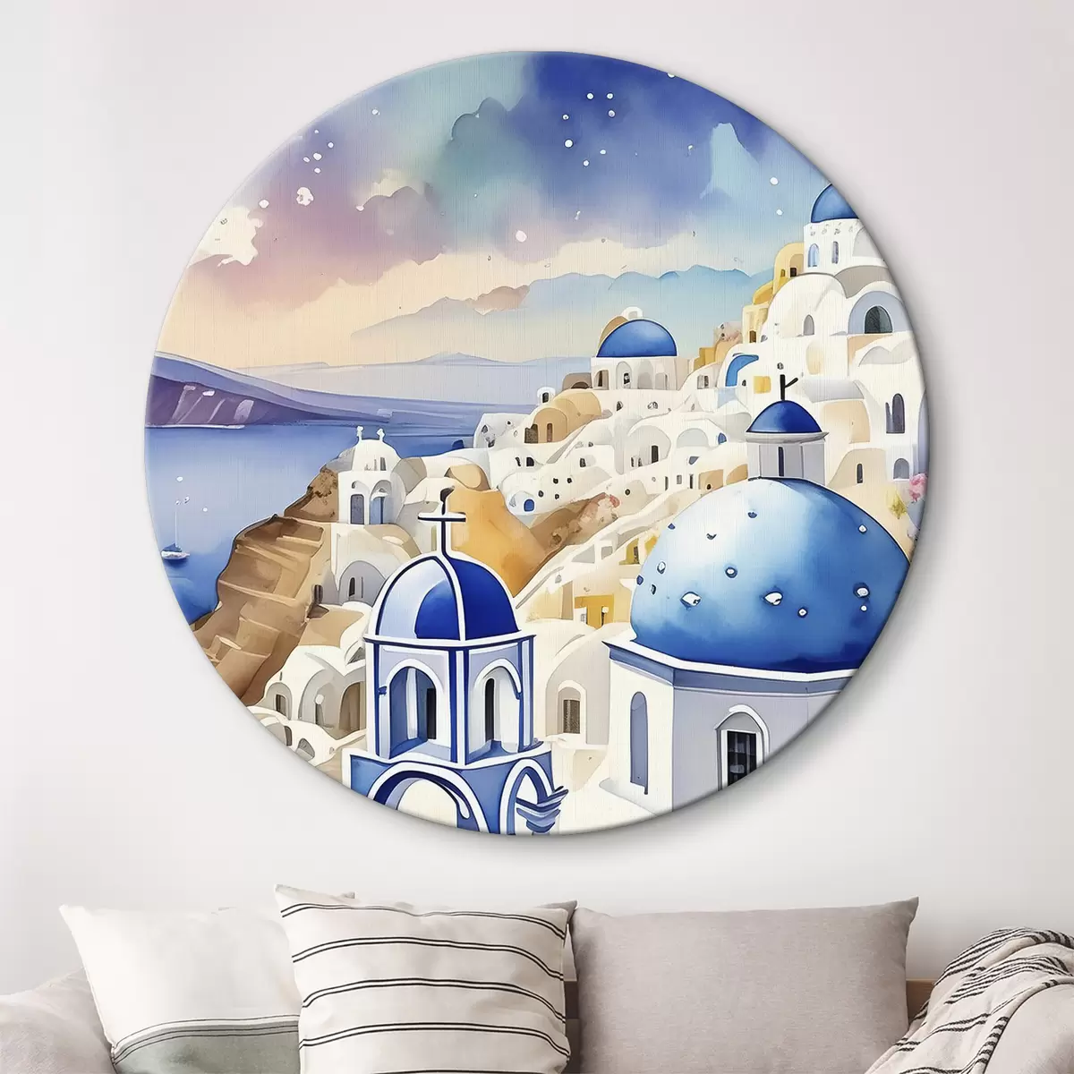 Obrázok Santorini, grécko architektúra, akvarel, kvety, pobrežie Stredozemného mora Nr r38401