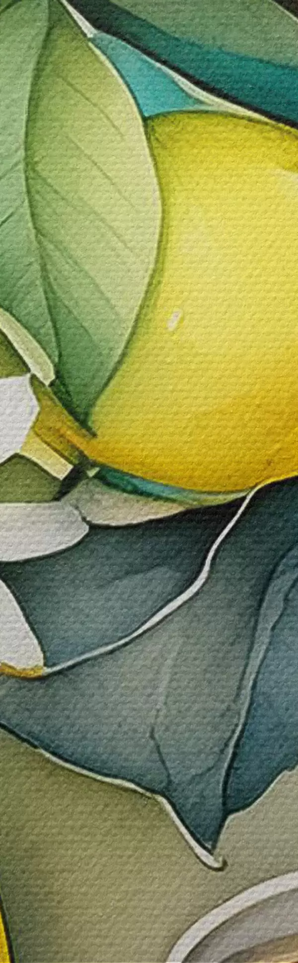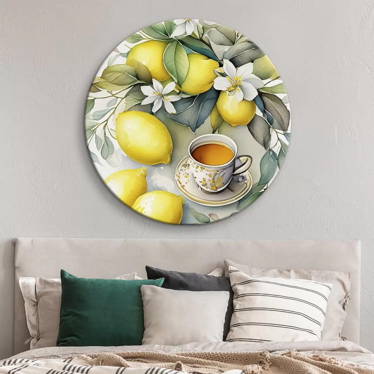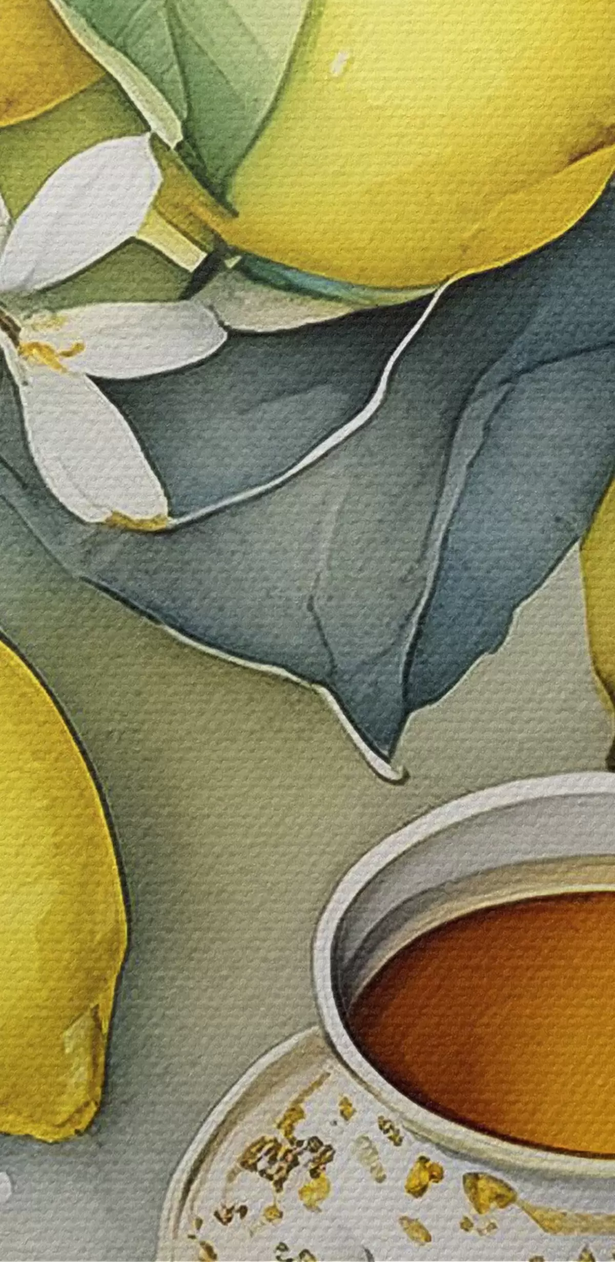 Obrázok Citróny a kvety, akvarel, raňajky, šálka čaju, bohémsky štýl Nr r38403
