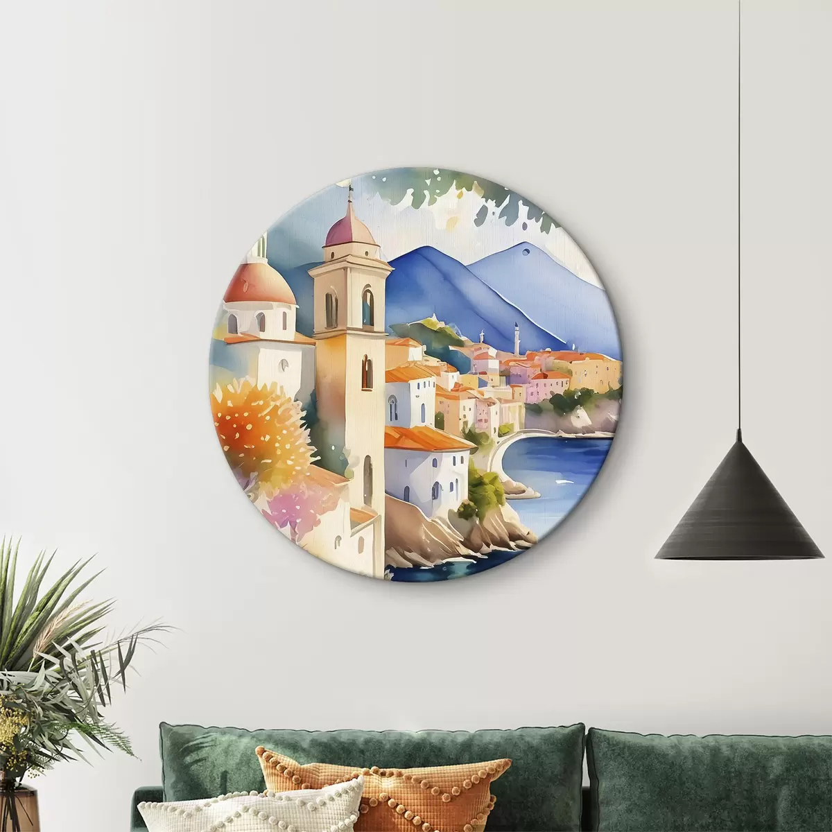 Obrázok Akvarel zobrazujúci mesto na okraji vodnej nádrže Nr r38407