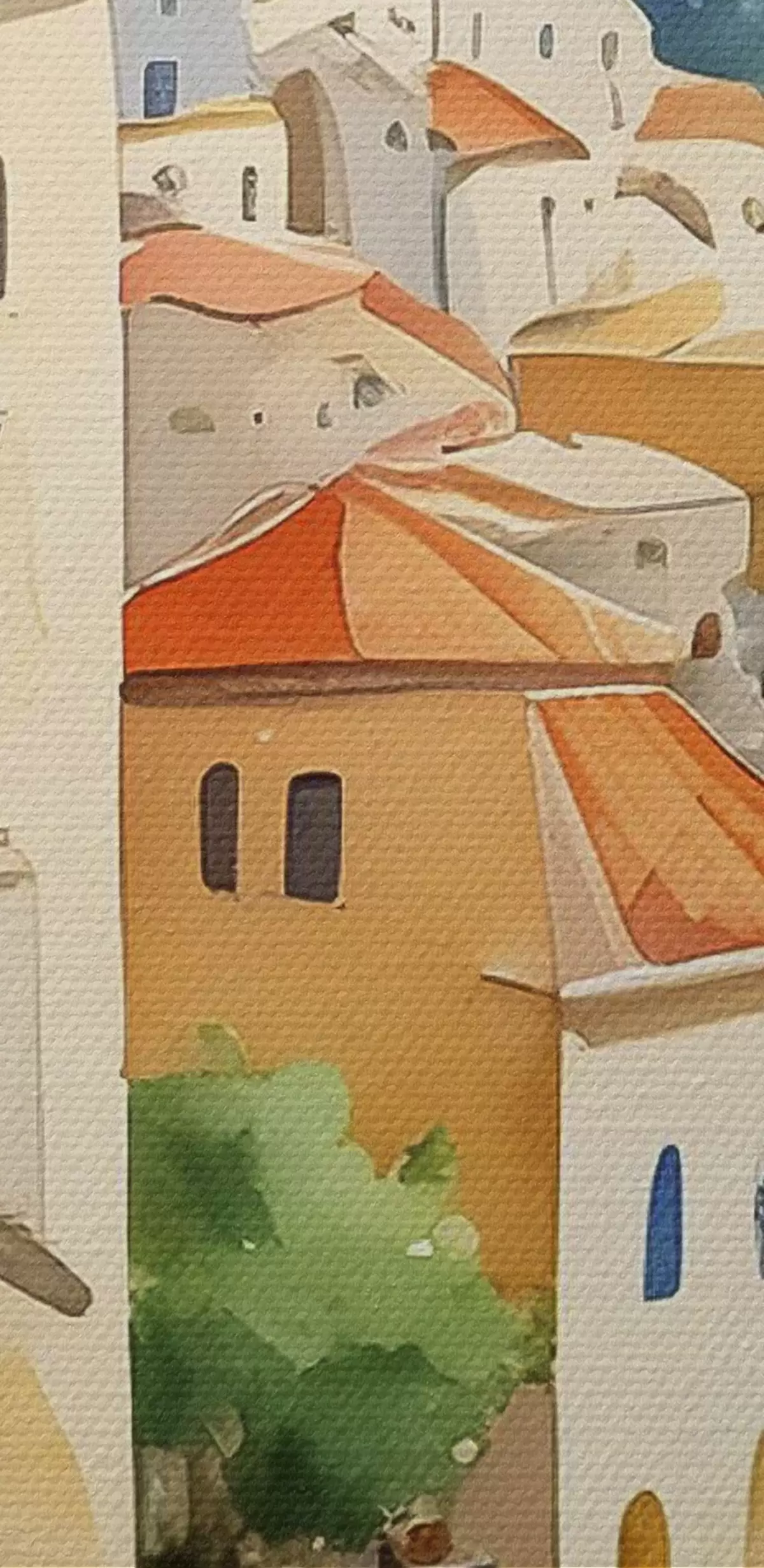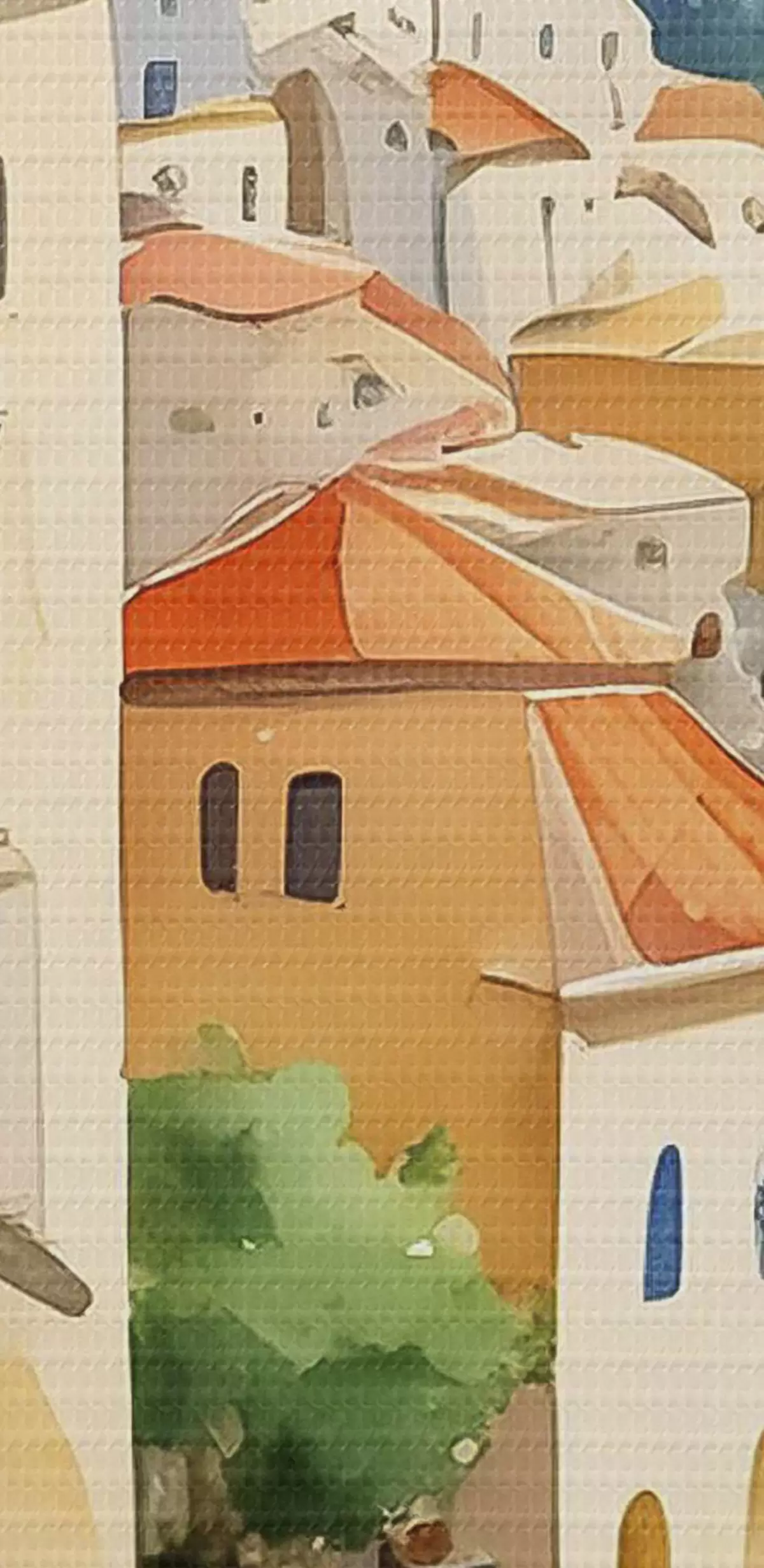 Obrázok Akvarel zobrazujúci mesto na kopci nad morom Nr r38409
