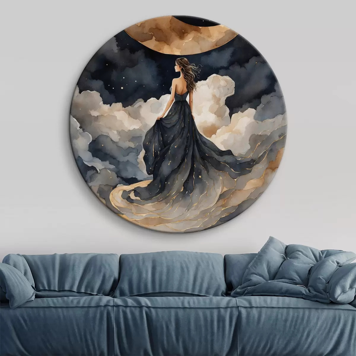 Obrázok Žena v modrých šatách a mesiac na oblohe Nr r38428