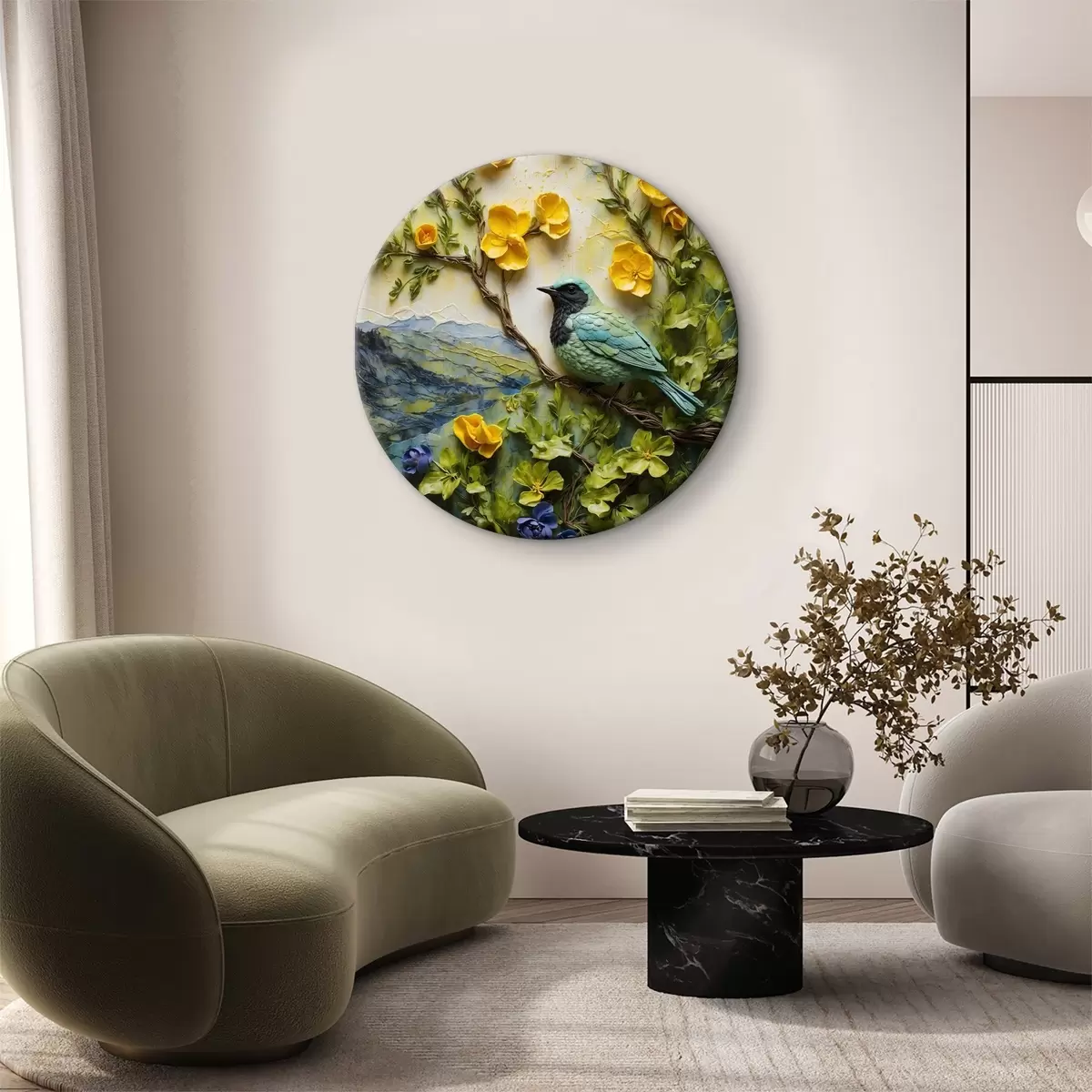 Obrázok Vták na vetve stromu obklopený kvetmi Nr r38431