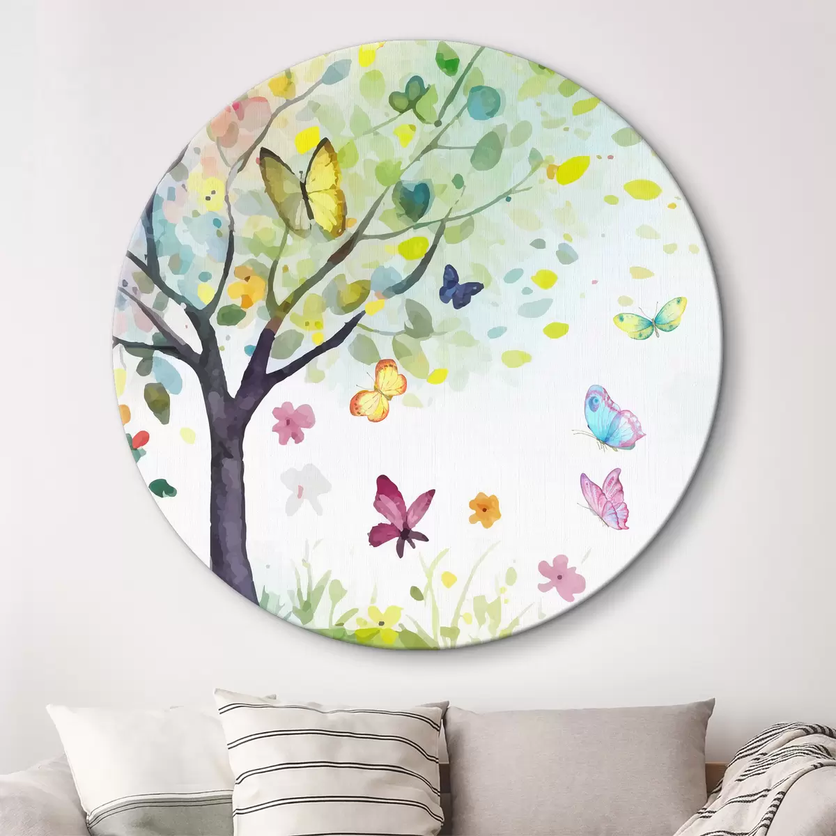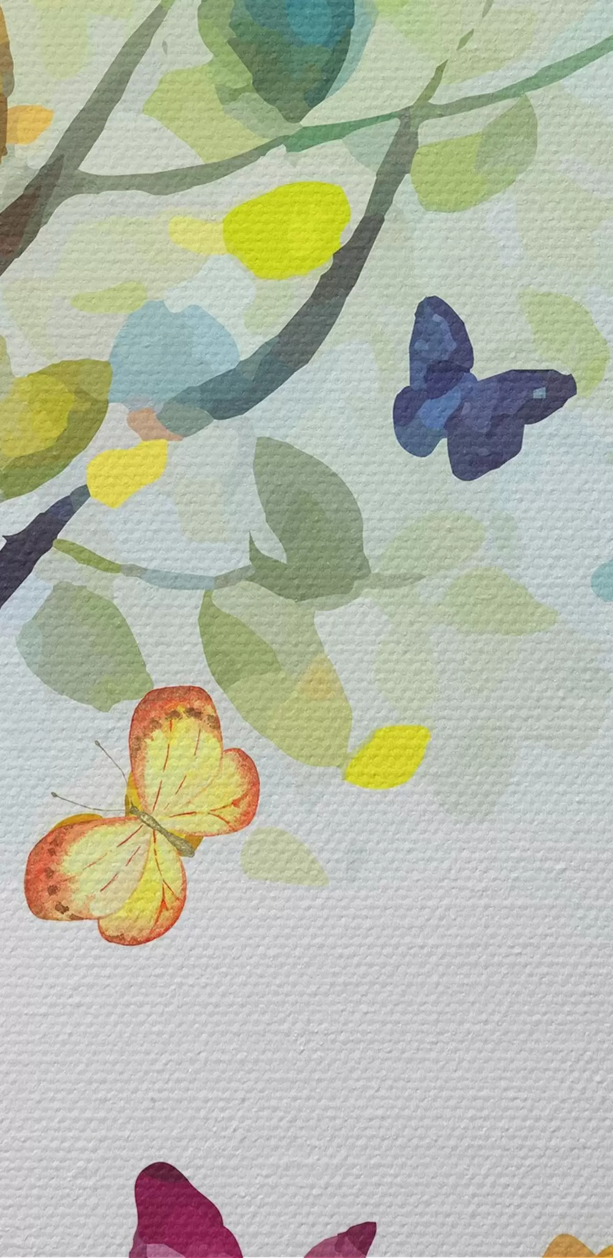 Obrázok strom s jasnými listami, akvarel, motýle Nr r38444
