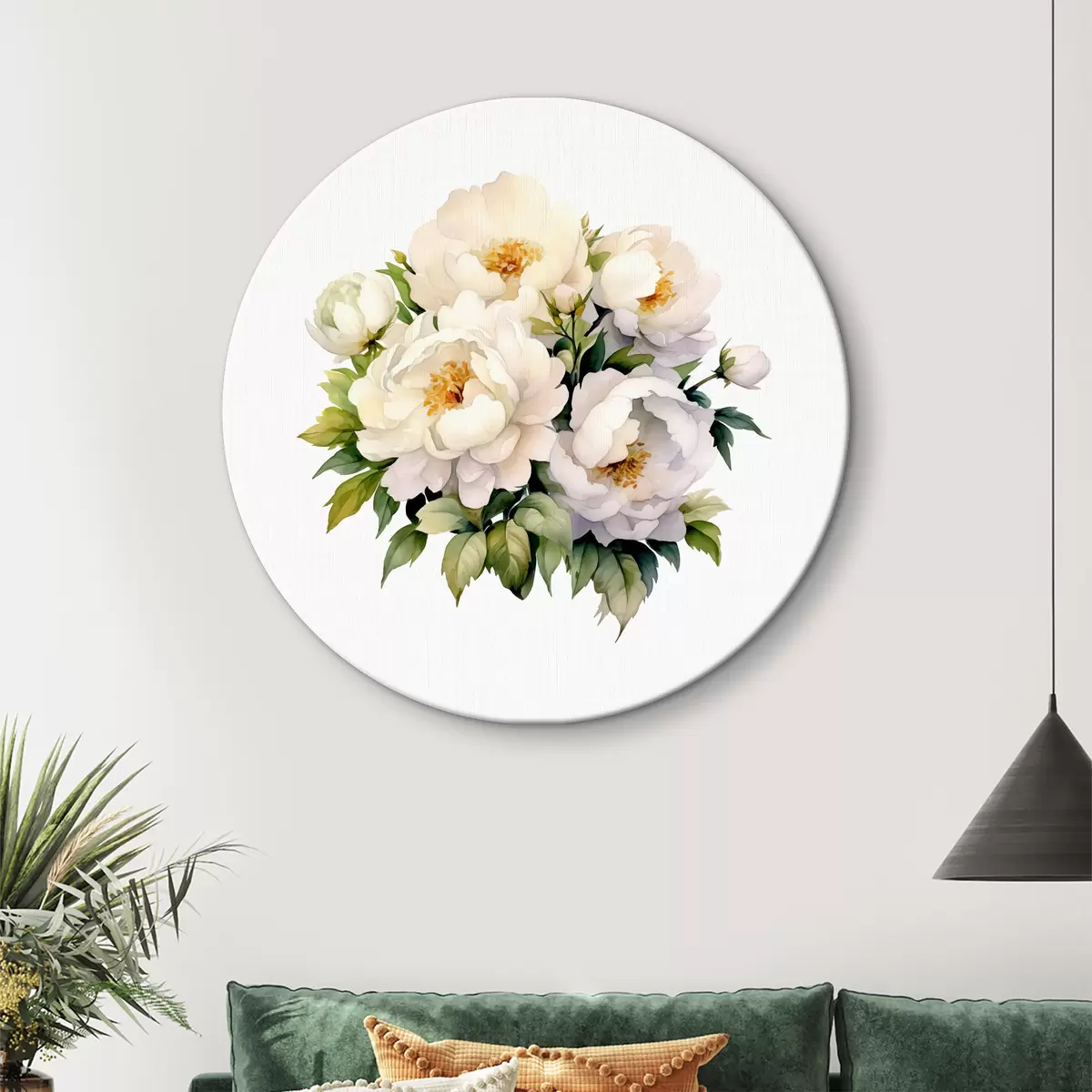 Obrázok Biele kvitnúce kvety pivonky v zelených listoch, akvarel, botanický Nr r38481