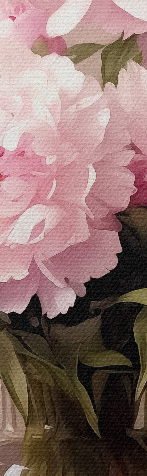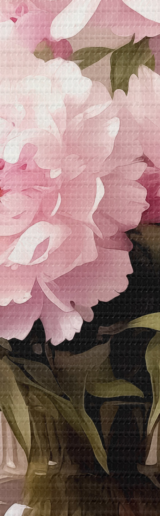 Obrázok Ružové pivonky v sklenenej váze na čiernom podklade, imitácia olejomaľby, kvety Nr r38482