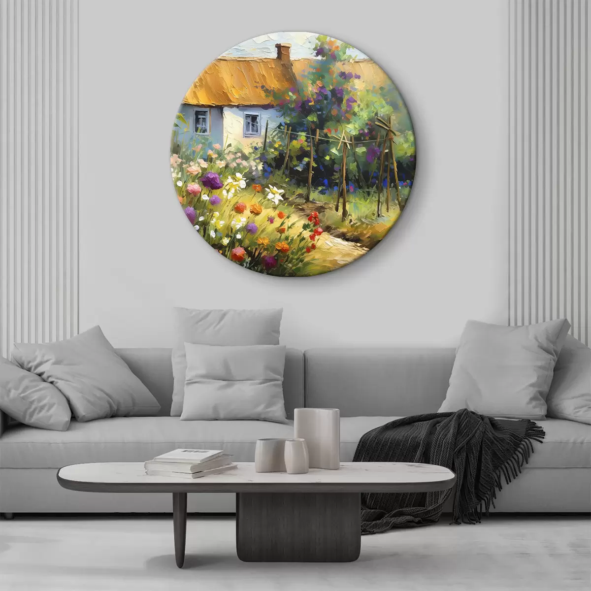 Obrázok Leto na dedine, olejová farba, statok, stromy a kvety, záhrada, rustikálny štýl Nr r38490