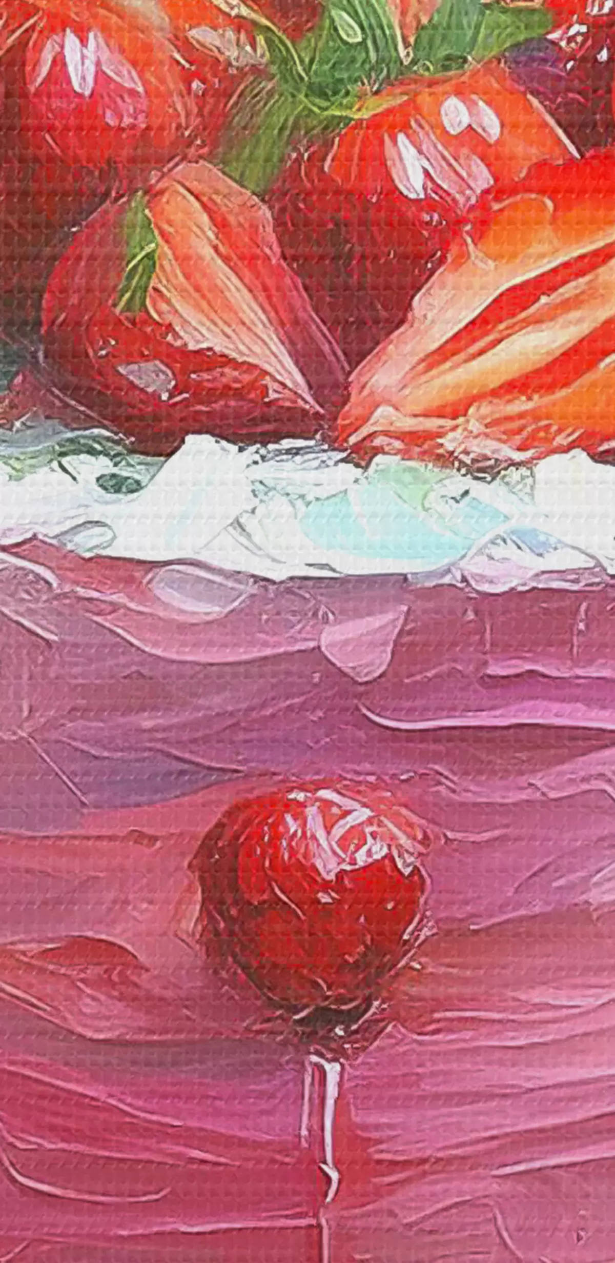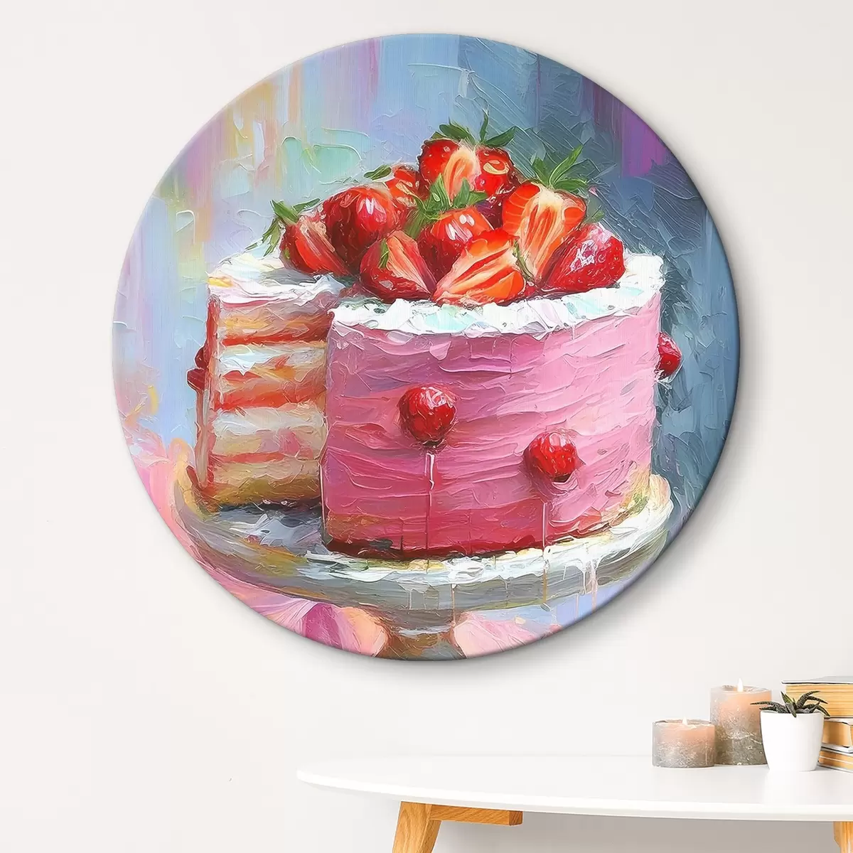 Obrázok Jahodová torta s krémom, olejová farba, veľké ťahy štetcom, letné bobule, ružové farby Nr r38499