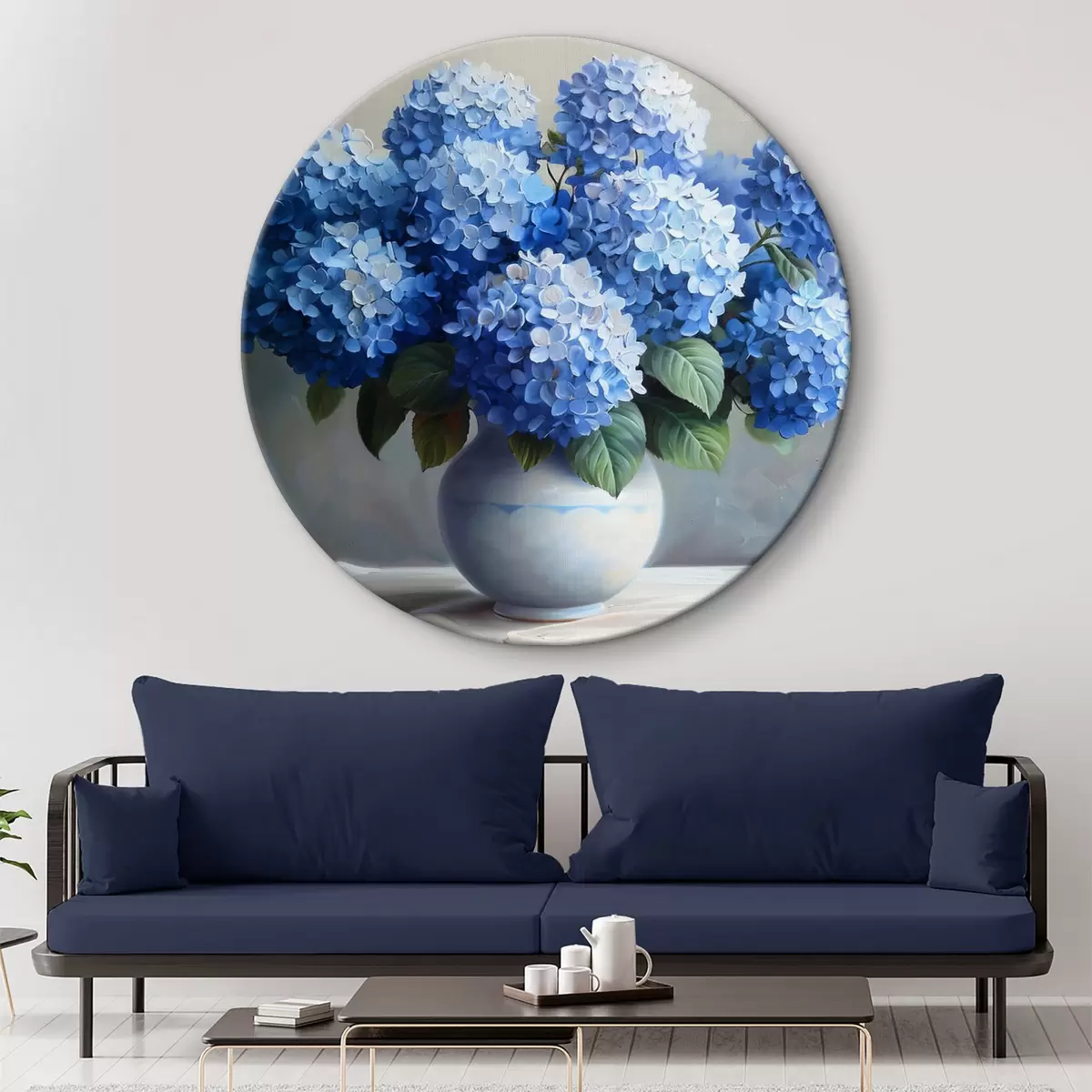 Obrázok Kytica modrých hortenzií v bielej váze Nr r38696