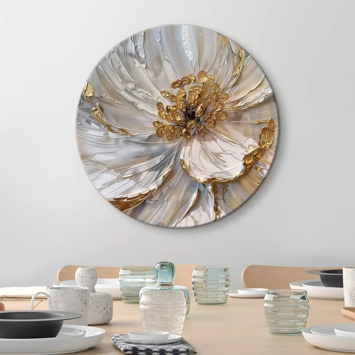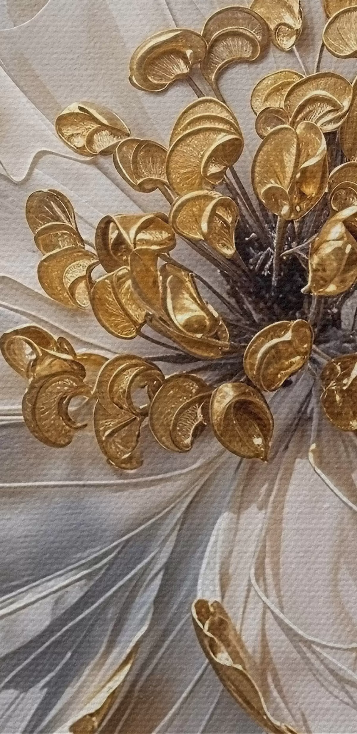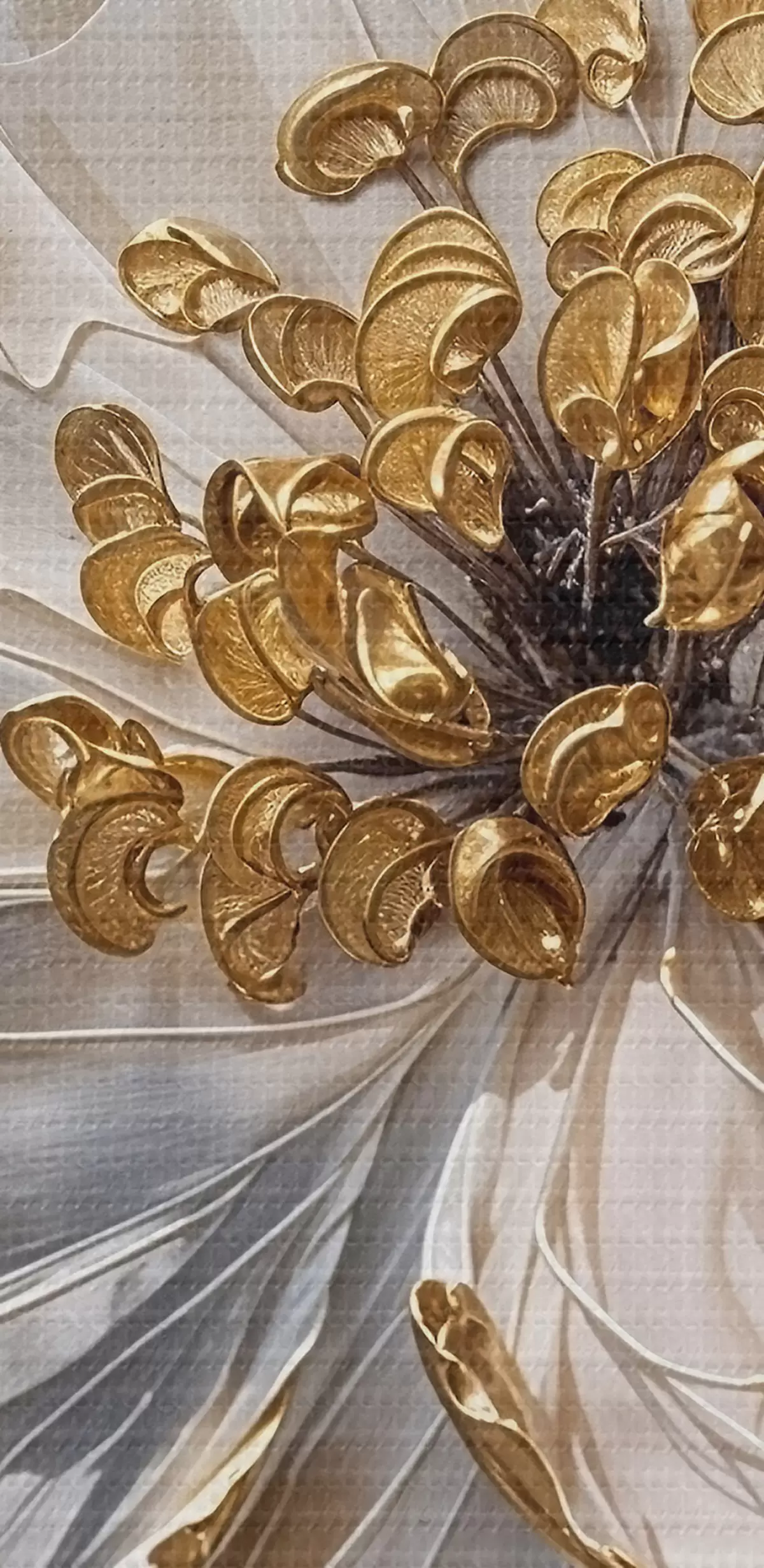 Obrázok Detail veľkého bieleho kvetu so žltými tyčinkami v strede, umelecká dekorácia maľovaná olejom Nr r38755