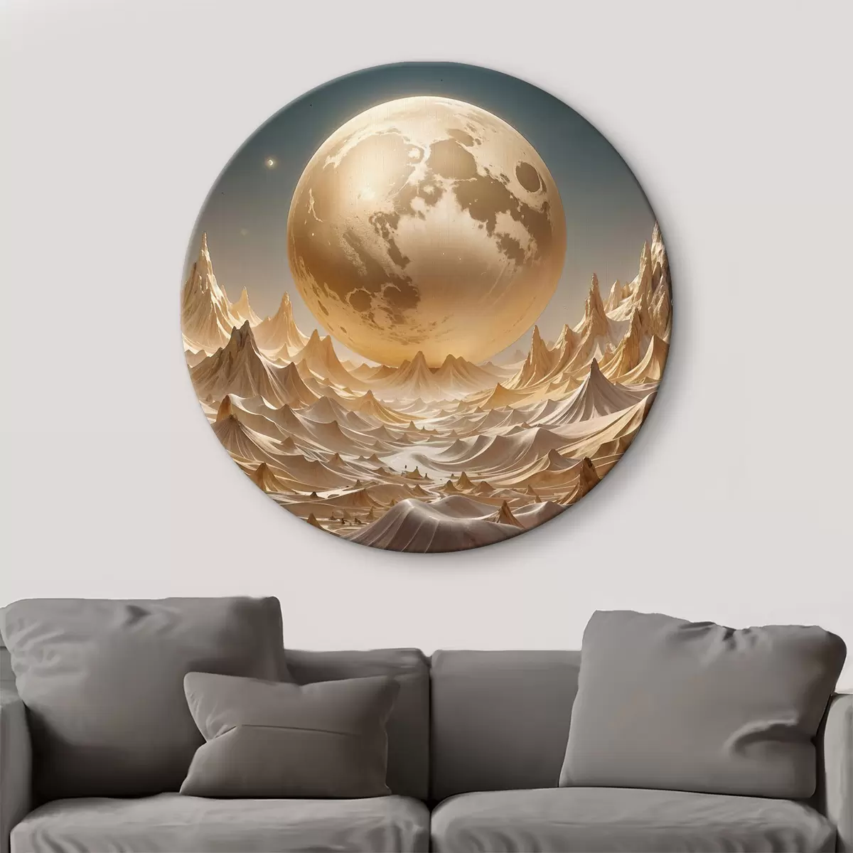 Obrázok Žiarivý spln nad surrealistickou hornatou krajinou s vrcholmi Nr r38775